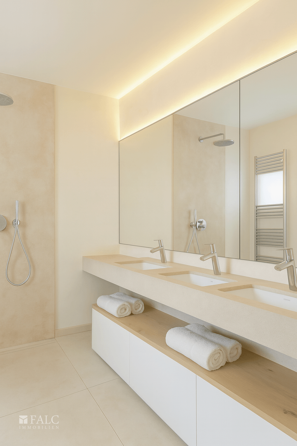 Auf einer Wohnfläche von ca. 229 m² erwarten Sie sechs Schlafzimmer, drei moderne Bäder, sowie großzügige, offen gestaltete Wohn- und Essbereiche. Die hochwertigen Materialien und stilvollen Details unterstreichen den gehobenen Anspruch dieser Immobilie.