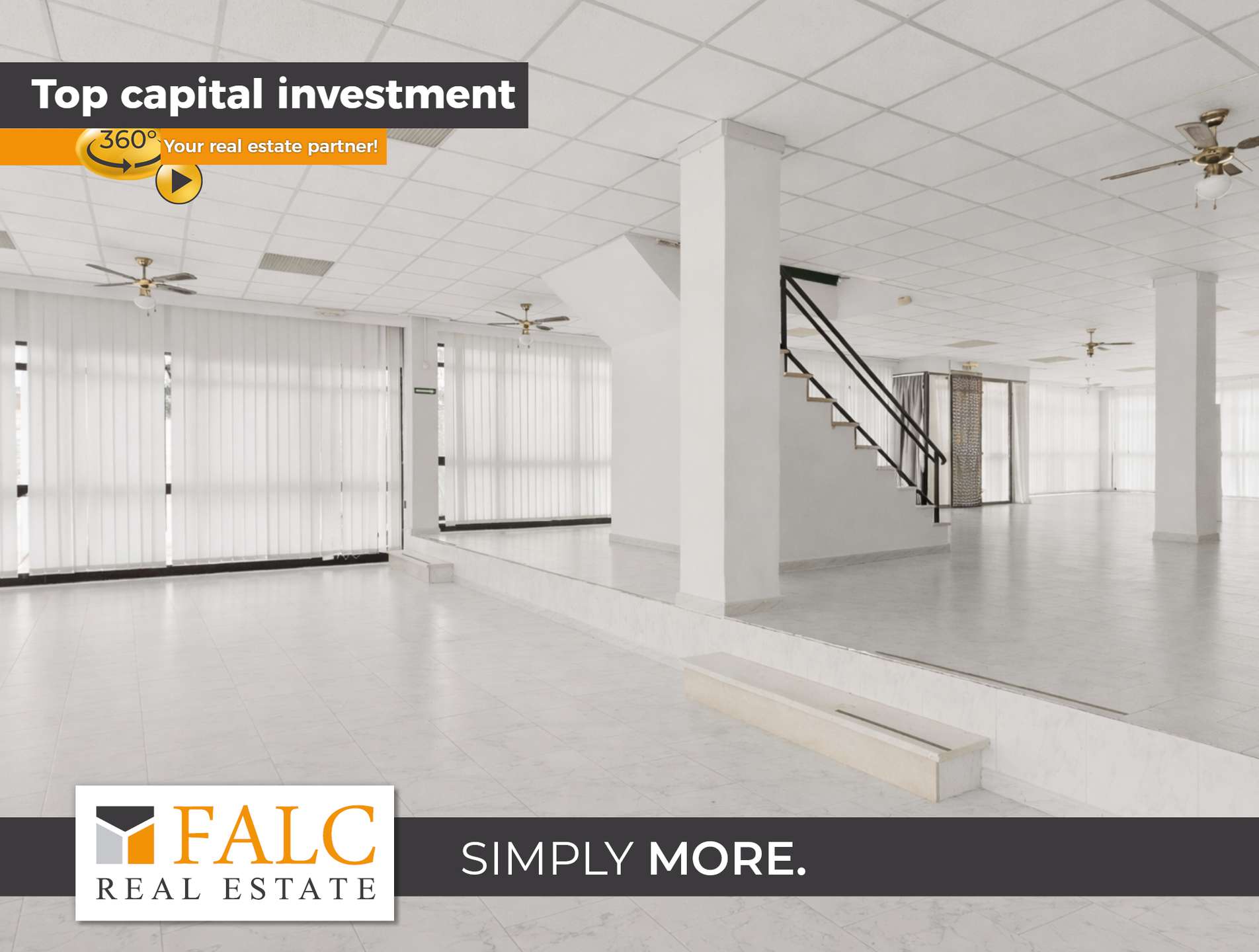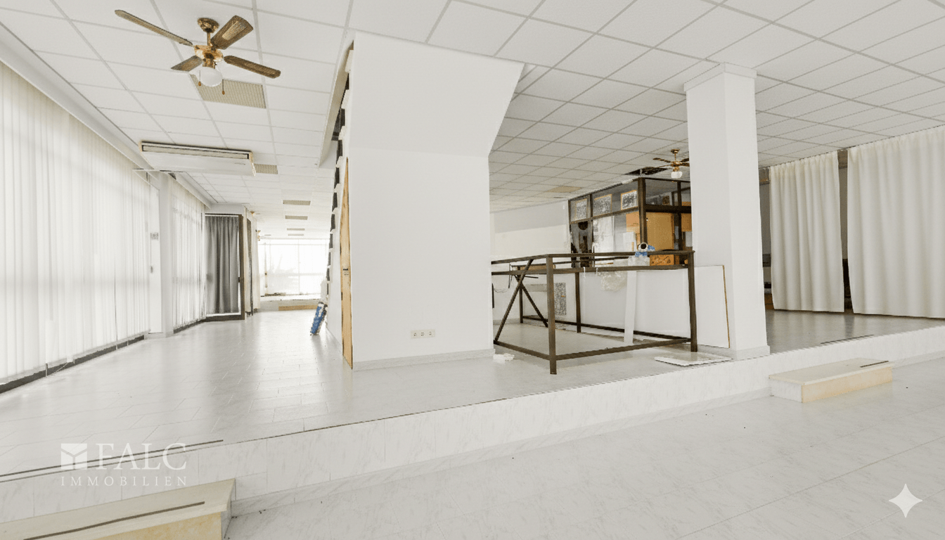 Die Immobilie befindet sich zwischen zwei wichtigen Straßen und profitiert von einer ausgezeichneten Sichtbarkeit sowie hoher Frequenz. Große Glasfronten sorgen nicht nur für eine moderne, einladende Optik, sondern auch für lichtdurchflutete Räume und optimale Präsentationsmöglichkeiten – perfekt für Einzelhandel, Ausstellungsflächen, Praxisräume, Büros oder Showrooms.