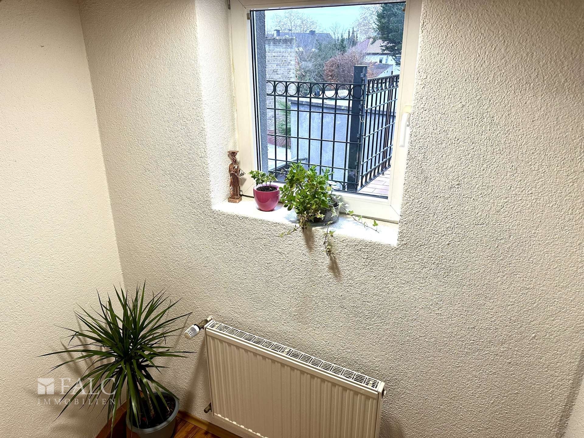 Im Obergeschoss stehen Ihnen zwei gut geschnittene Schlafzimmer sowie ein modernes Bad zur Verfügung plus eine Gäste-Toilette. Vom Bad aus gibt es einen Zugang zu einem Balkon.