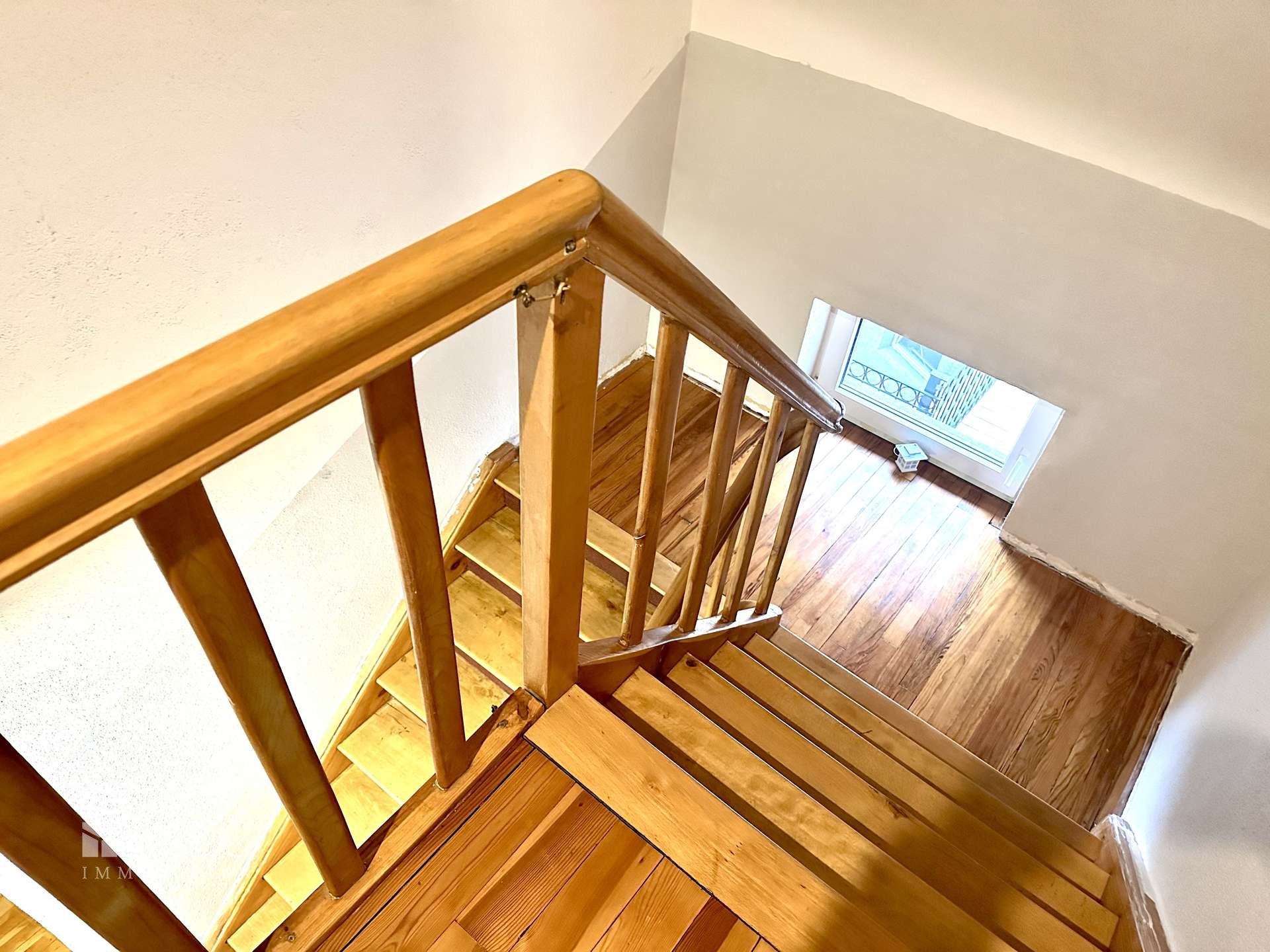Schön gestaltet ist das Treppenhaus aus hellem Holz; dazu passend die Zimmertüren.