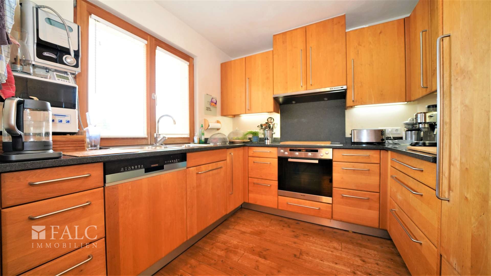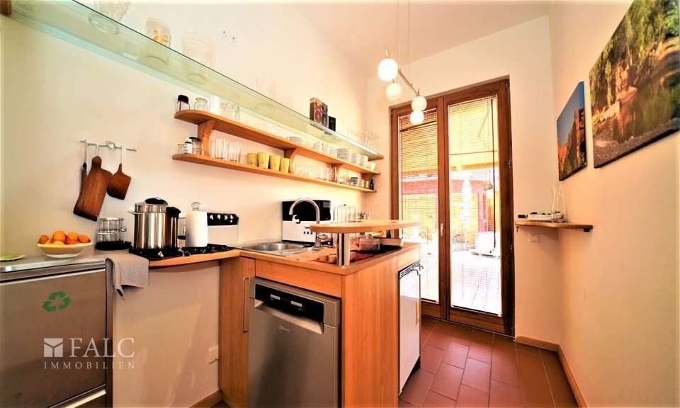 Am Ende des Flurs befindet sich das Reich der Küchenfee, in der Sie kulinarische Köstlichkeiten für Ihre Lieben zubereiten können und welches Sie mit der Terrasse verbindet.