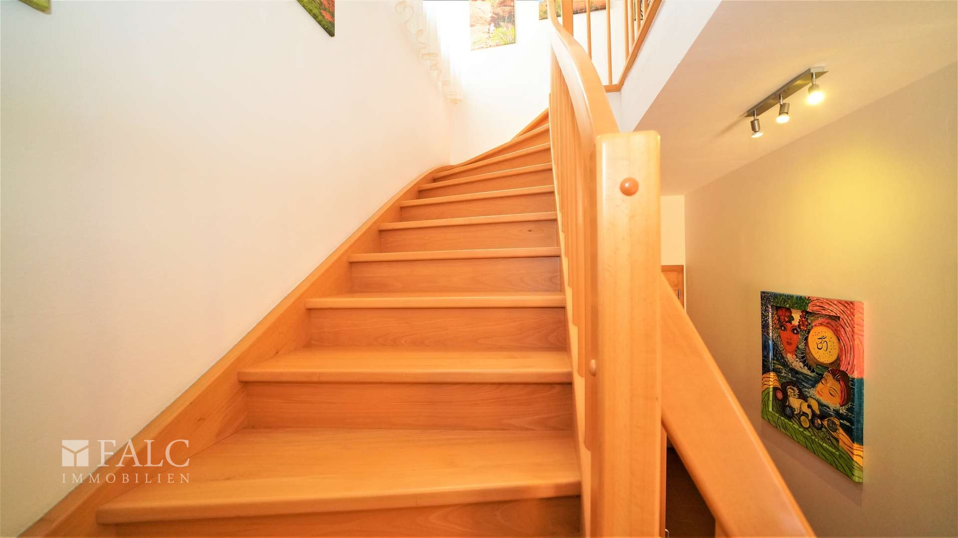 Über die offene massive Buchenholz-Treppe gelangen Sie in das Obergeschoss in eine großzügige Diele.