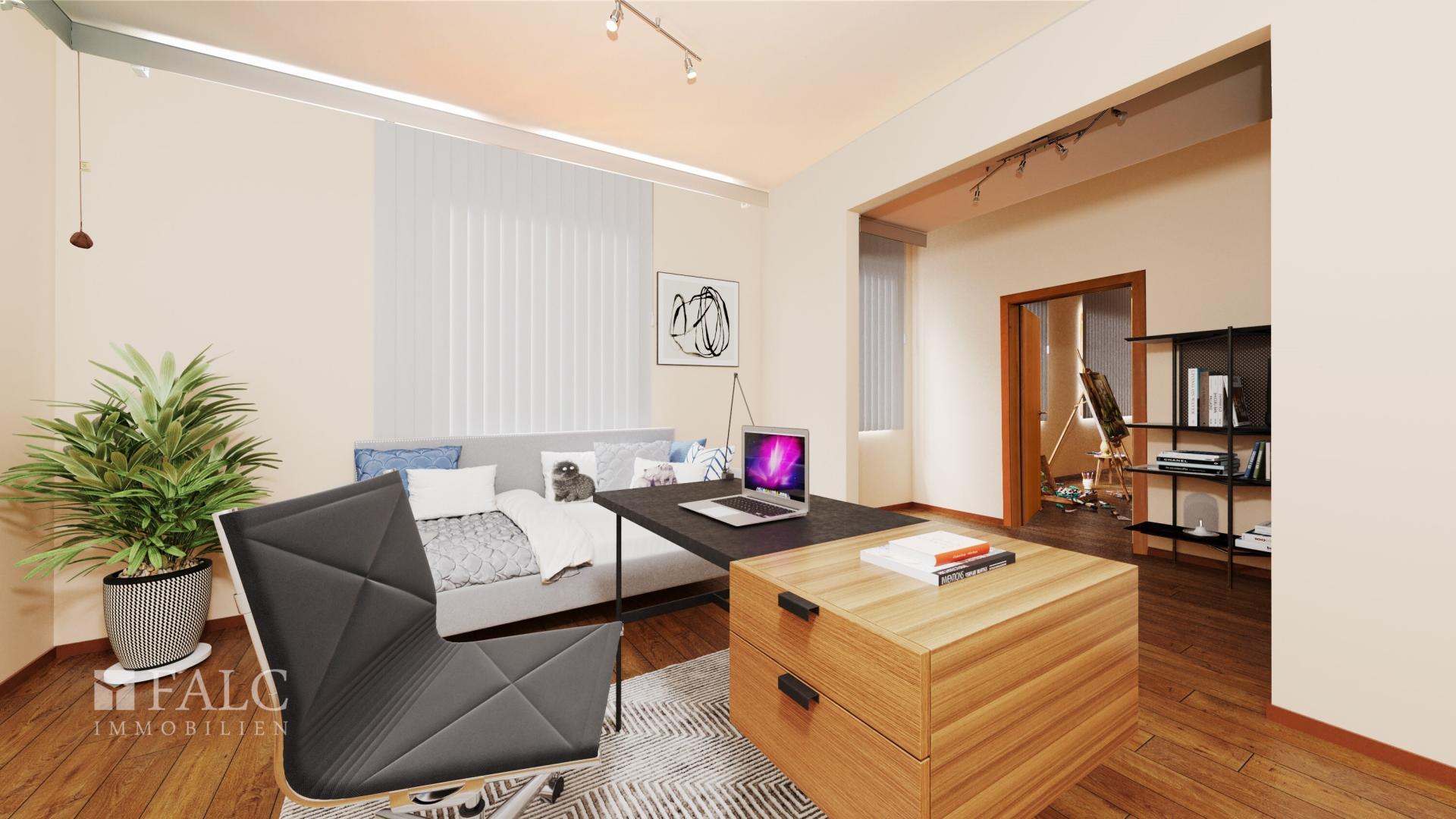 Zwei weitere Zimmer stehen hier zur Verfügung, mit viel Raum zur freien Gestaltung. Sie können sie beispielsweise wie bisher als Arbeitszimmer und Atelier einrichten, natürlich ist auch die Funktion als Schlaf- und Kinderzimmer denkbar.