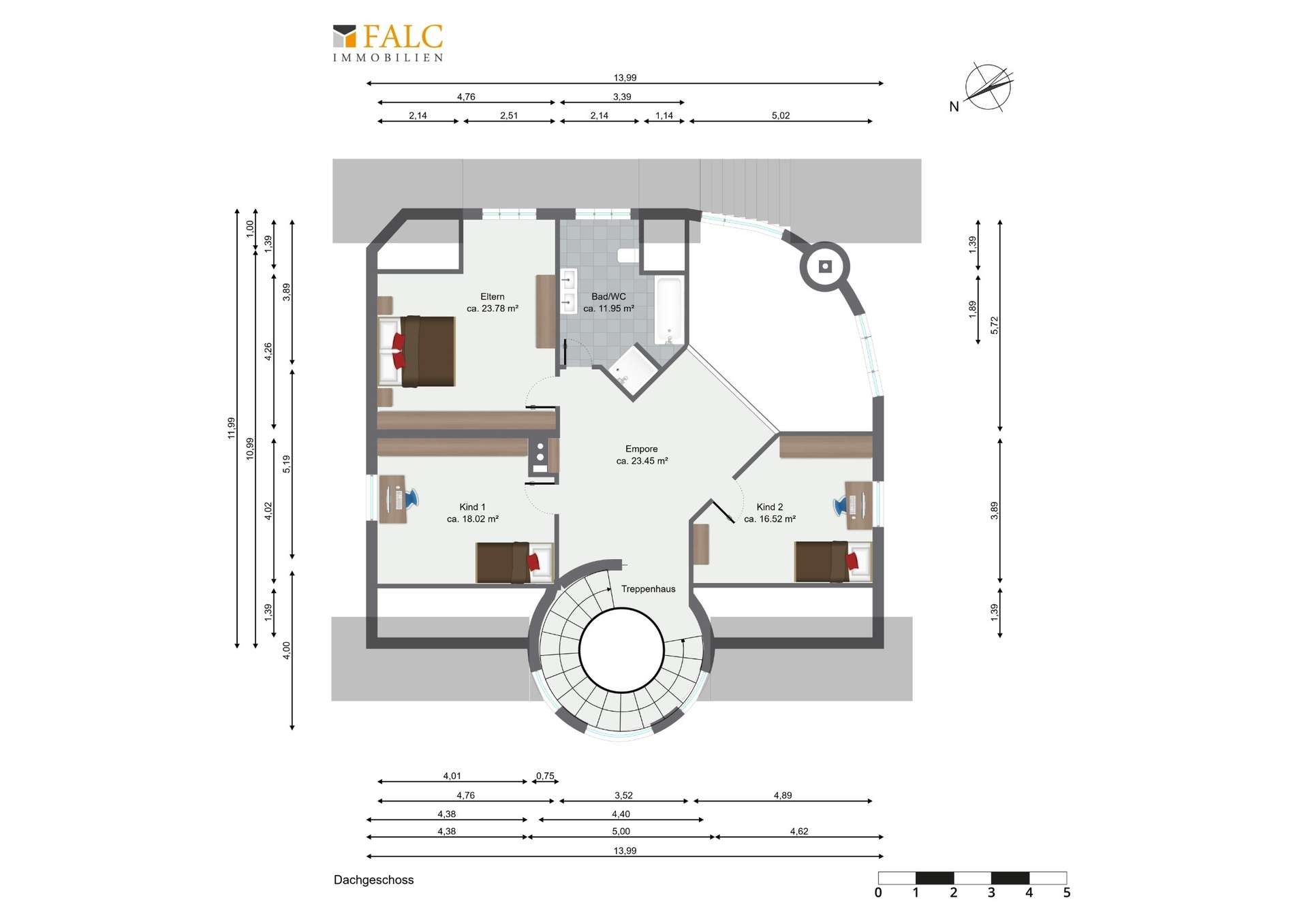 Über den Treppenhaus-Turm begeben Sie sich in das Obergeschoss. Ihr neuer Lieblingsplatz im Obergeschoss könnte auf der Galerie mit Blick auf den Kamin im Erdgeschoss werden, hier bietet sich Platz für eine Bibliothek mit gemütlicher Leseecke.