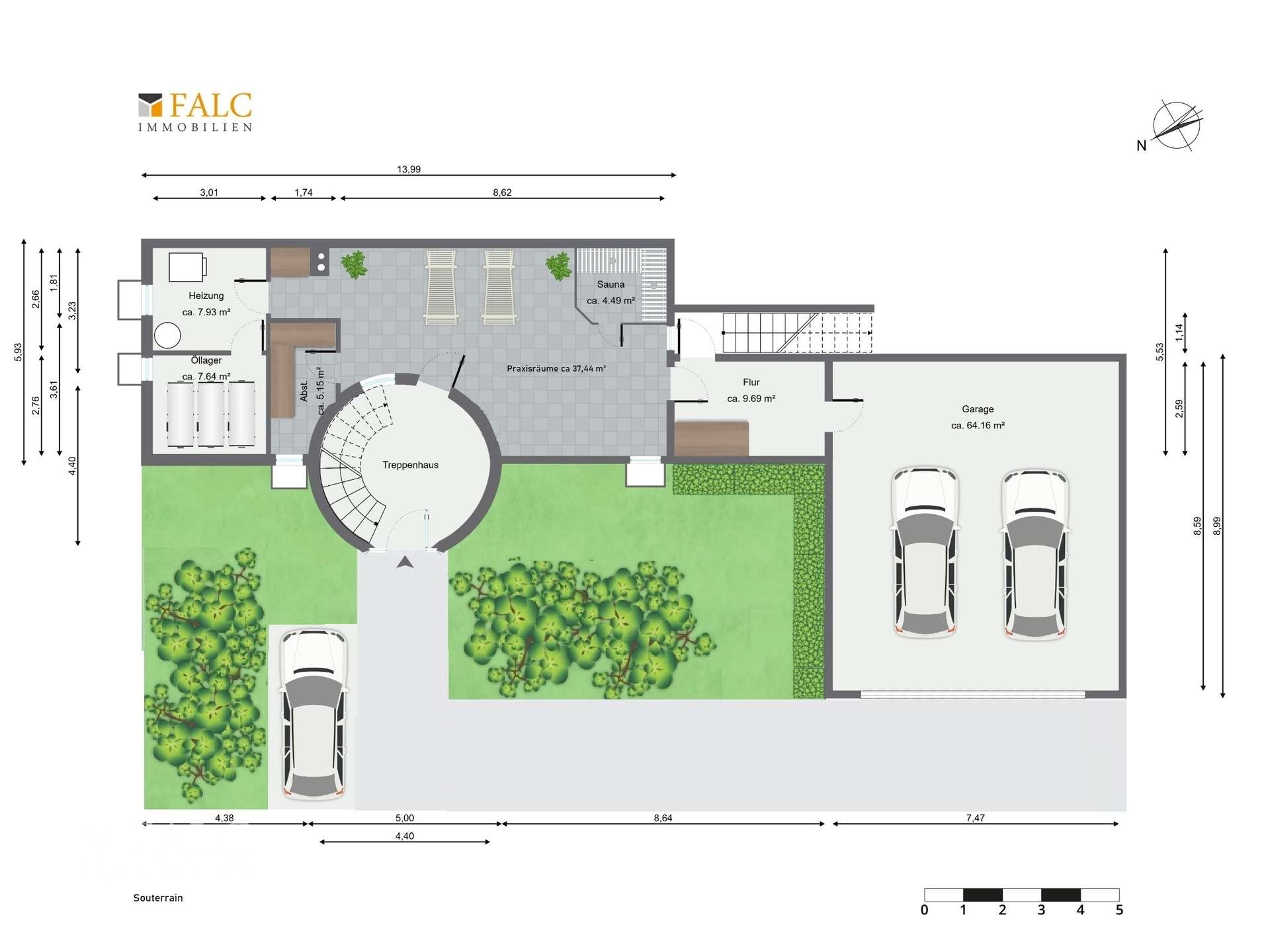 Ein weiteres Highlight ist hier sicherlich der großzügige Wellnessbereich mit Sauna im Souterrain, der momentan als Praxis genutzt wird.