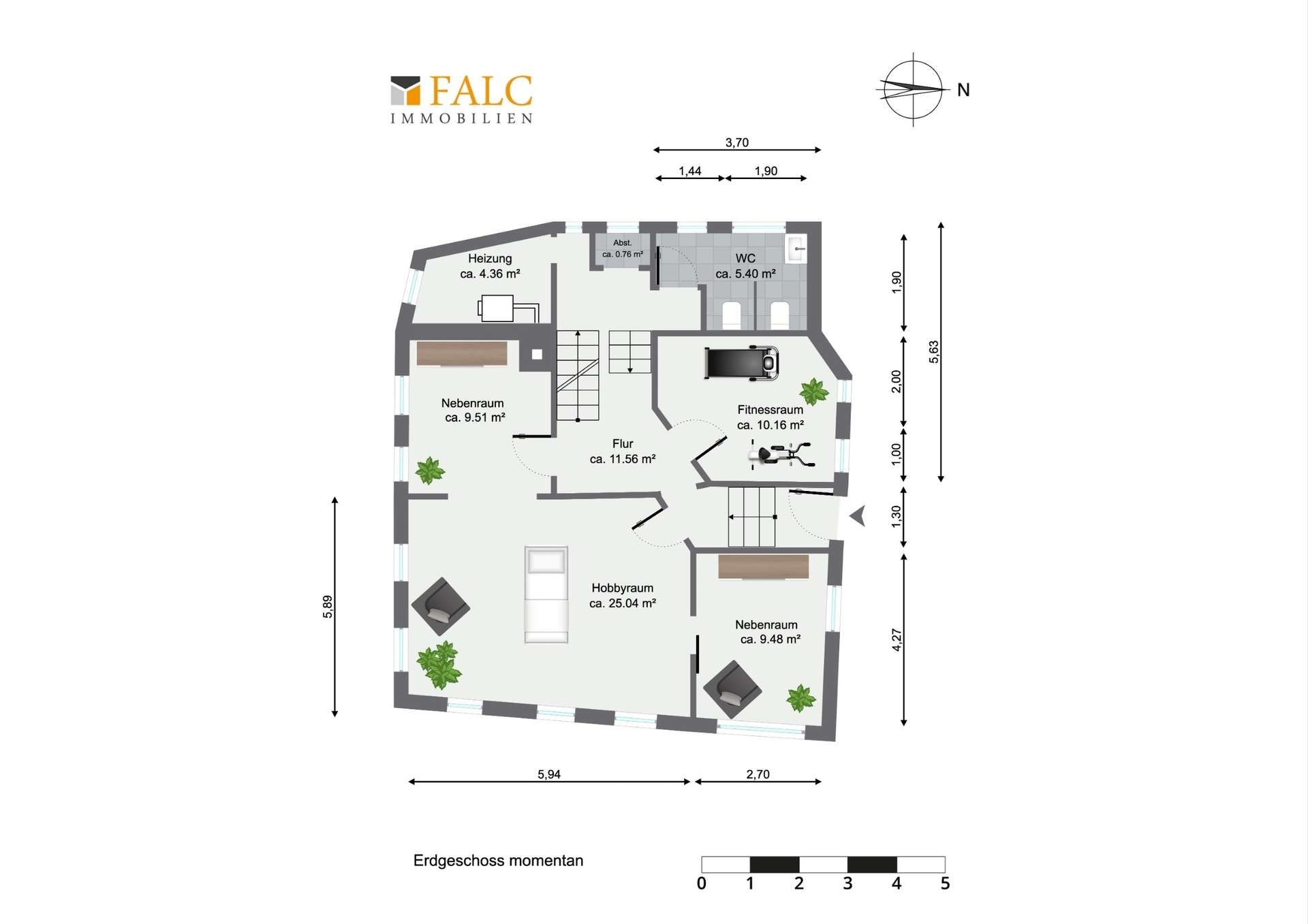 Ein besonderes Highlight ist das große Erdgeschoss, der weiteren Wohnraum für Sie bereithält. Sie benötigen ein weiteres Schlafzimmer für den Teenie oder die Schwiegermama? Oder träumen Sie von einem Ankleidezimmer? Der Gatte benötigt ein Homeoffice oder einen Hobbyraum? Vier Zimmer finden sich zum individuellen Einrichten. Der bisher zur Fitness genutzte Raum könnte zum Tageslichtbad werden, eine offene Wohnküche könnte diese Etage zur selbständigen Wohneinheit komplettieren.
