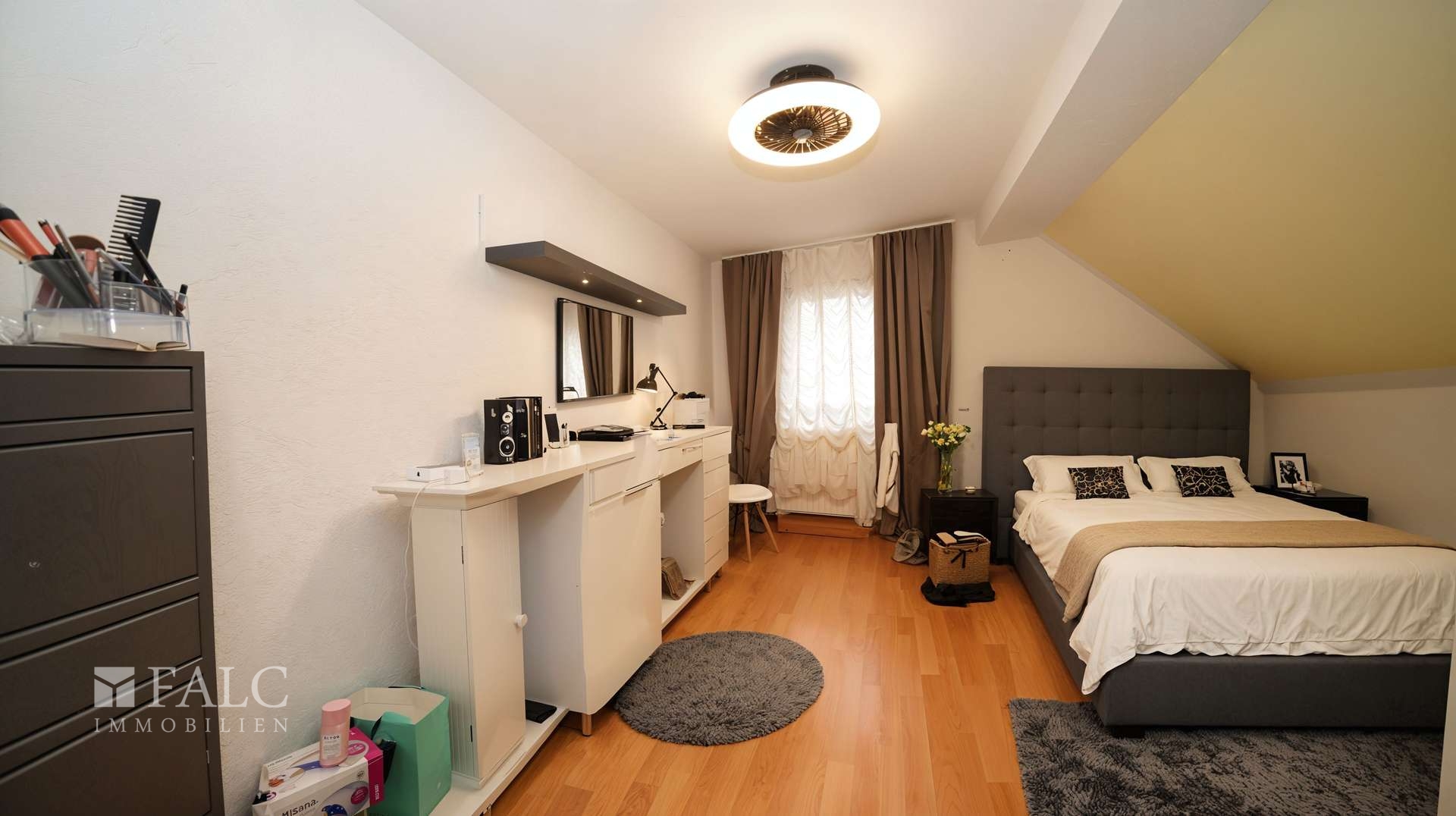 Insgesamt sieben helle Zimmer, zwei Bäder sowie ein zusätzliches Gäste-WC sorgen für ein angenehmes Wohngefühl. Hochwertige Parkett- und Fliesenböden unterstreichen den gepflegten Charakter des Hauses.