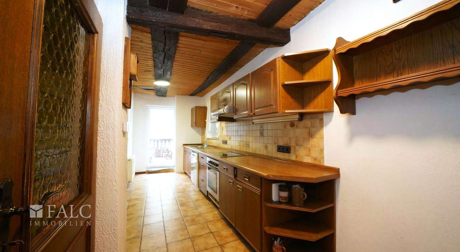 Über den Flur auf der Ebene des Obergeschosses gelangen Sie über die Treppe in die zweite Hauptwohnung, die sich über das 2. Obergeschoss sowie das Dachgeschoss erstreckt. Mit einer Gesamtwohnfläche von über 135 m² bietet diese Einheit ein großzügiges und besonderes Wohnambiente. Im Eingangsbereich empfängt Sie ein kompakter Küchenbereich, der sich direkt und in unmittelbarer Verbindung zum offenen Wohn- und Essbereich verbindet. Eine praktische Nische innerhalb der Küche schafft zusätzlichen Stauraum für Vorräte.