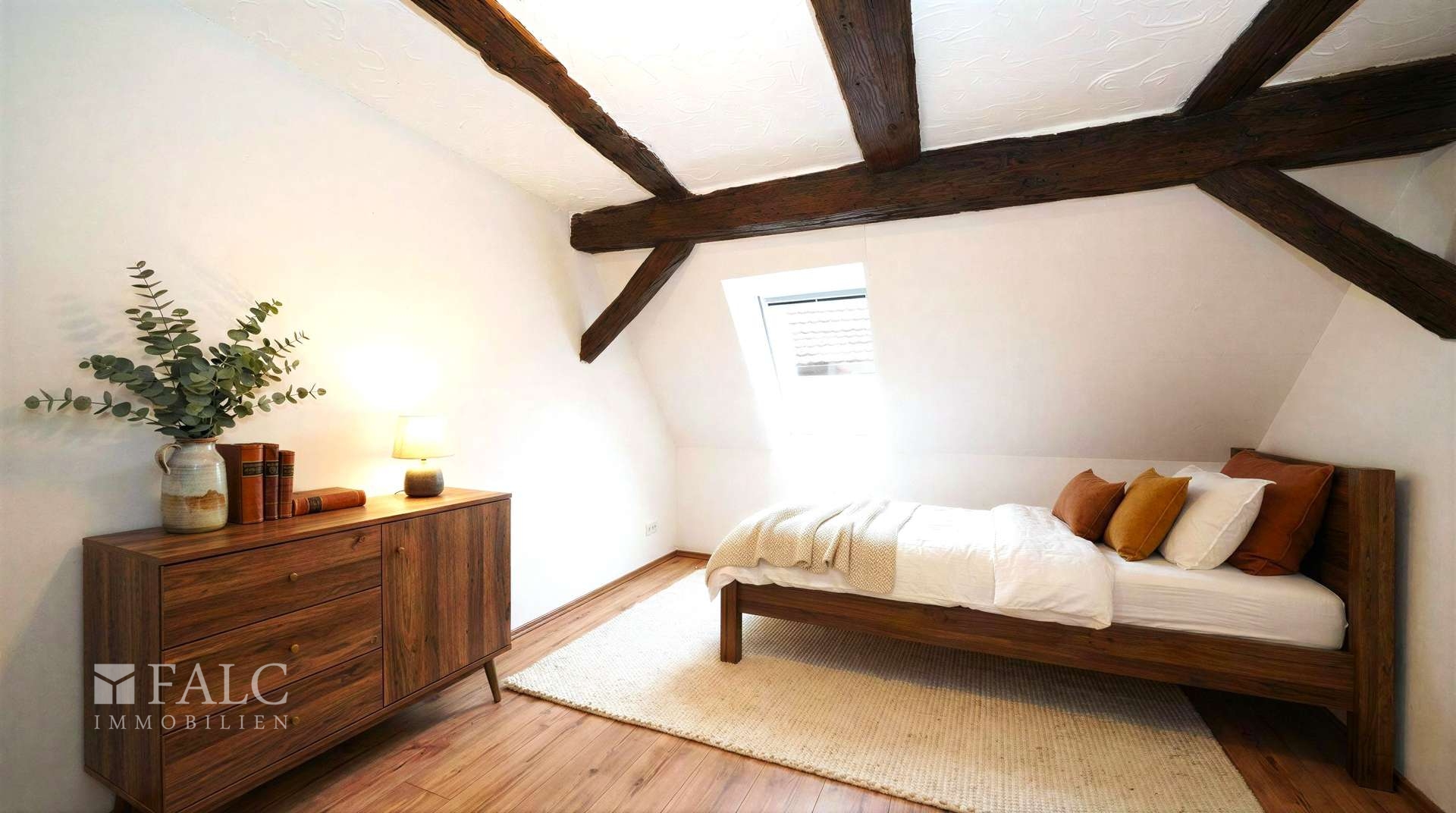 Über die Treppe gelangen Sie in das Dachgeschoss, das weitere vielseitig nutzbare Räumlichkeiten bereithält. Diese Ebene eignet sich ideal als separate Gästeetage, großzügiger Home-Office-Bereich mit zusätzlicher Schlafmöglichkeit oder auch als eigener Rückzugsort für Ihren Nachwuchs.