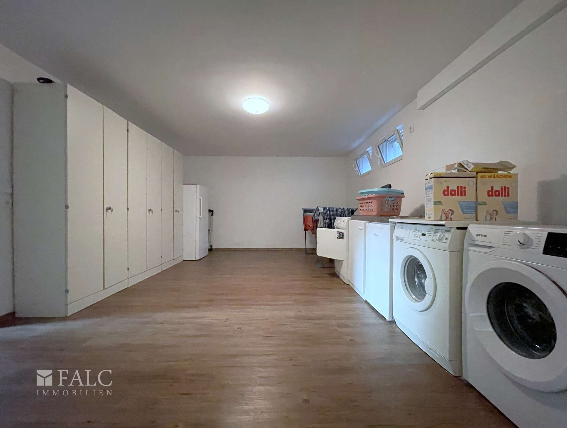 Der Eingangsbereich des Hauses liegt im Kellergeschoss. Von hier aus führt eine Treppe in den oberen Wohnbereich. Im unteren Bereich befinden sich ein Hobbyraum, der auch als zusätzliches Wohnzimmer genutzt werden kann, ein Badezimmer mit Dusche, ein separates Gäste-WC, der Heizraum sowie ein Waschraum. Vom Waschraum aus ist zudem ein weiteres Zimmer erreichbar, das sich gut als Gäste- oder Schlafzimmer eignet.