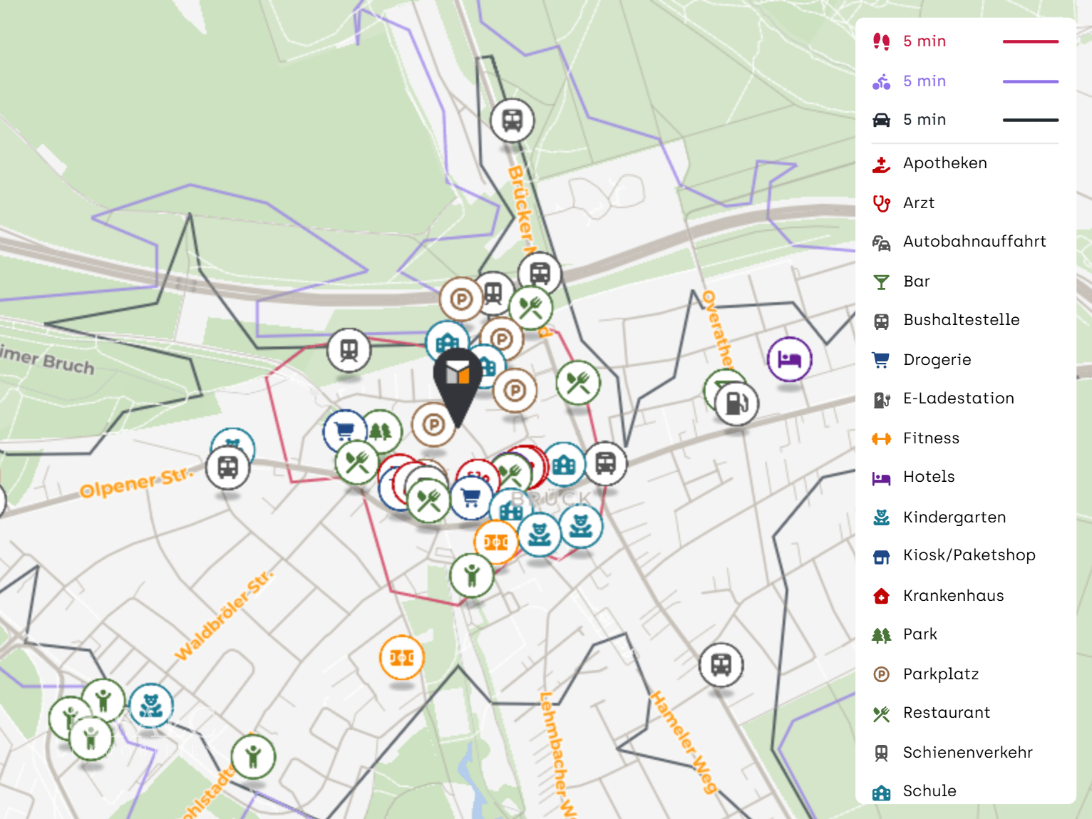 Auch die Vermietbarkeit profitiert von der starken Infrastruktur: Die Stadtbahnstation Brück Mauspfad ist fußläufig erreichbar und sorgt für eine schnelle Anbindung in Richtung Innenstadt und wichtige Knotenpunkte. Zusätzlich befinden sich Bushaltestellen wie Brück Mauspfad und Olpener Straße in der Nähe. Für Autofahrer ist die Lage ebenfalls praktisch, da der Kölner Autobahnring mit den Anschlüssen im Bereich des Autobahndreiecks Heumar zügig erreichbar ist. Der Flughafen Köln Bonn ist mit dem Auto in kurzer Zeit erreichbar und stärkt die Standortqualität für Berufspendler und Vielflieger.
