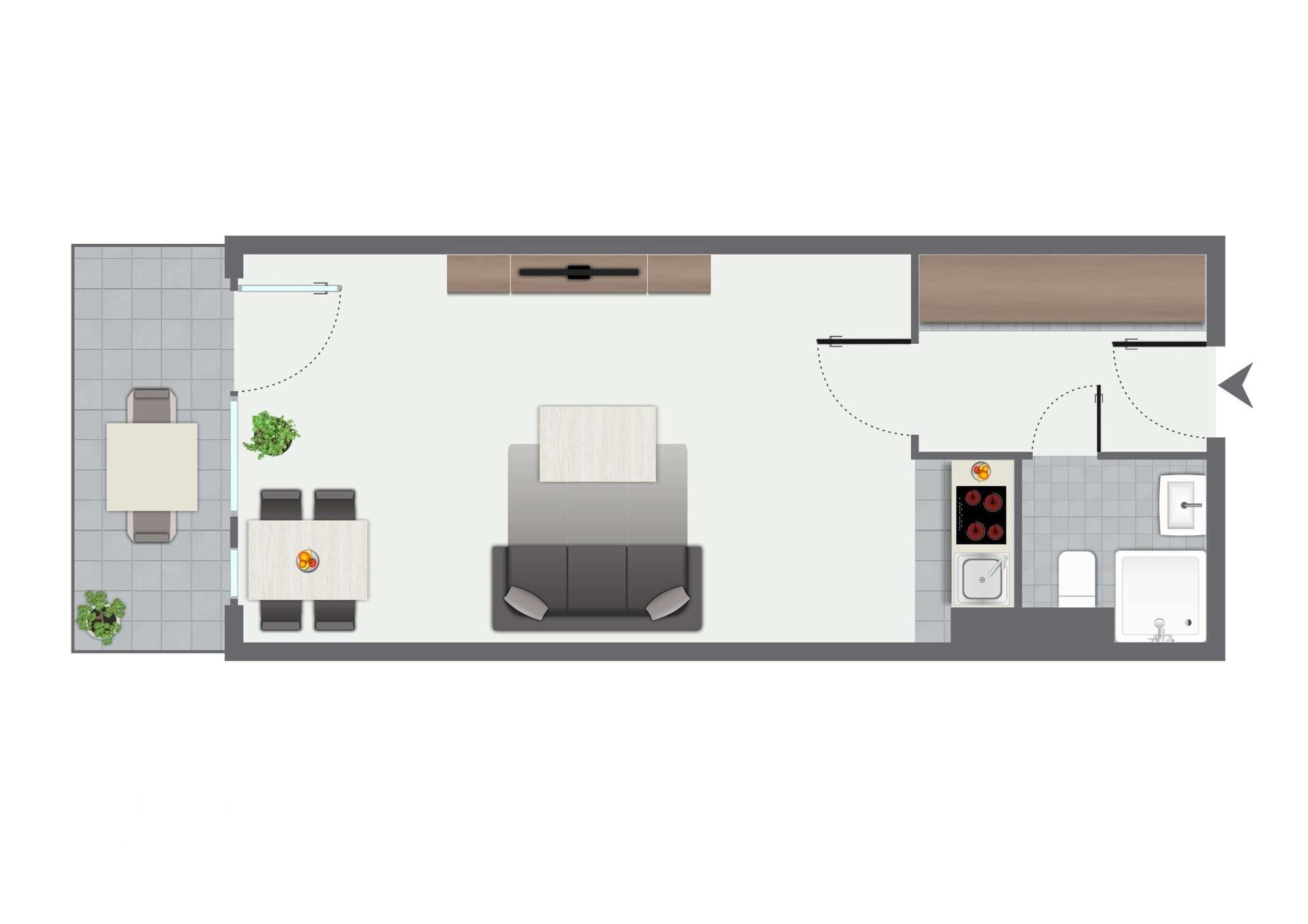 - Praktische Raumaufteilung, die trotz kompakter Wohnfläche eine angenehme Wohnatmosphäre schafft