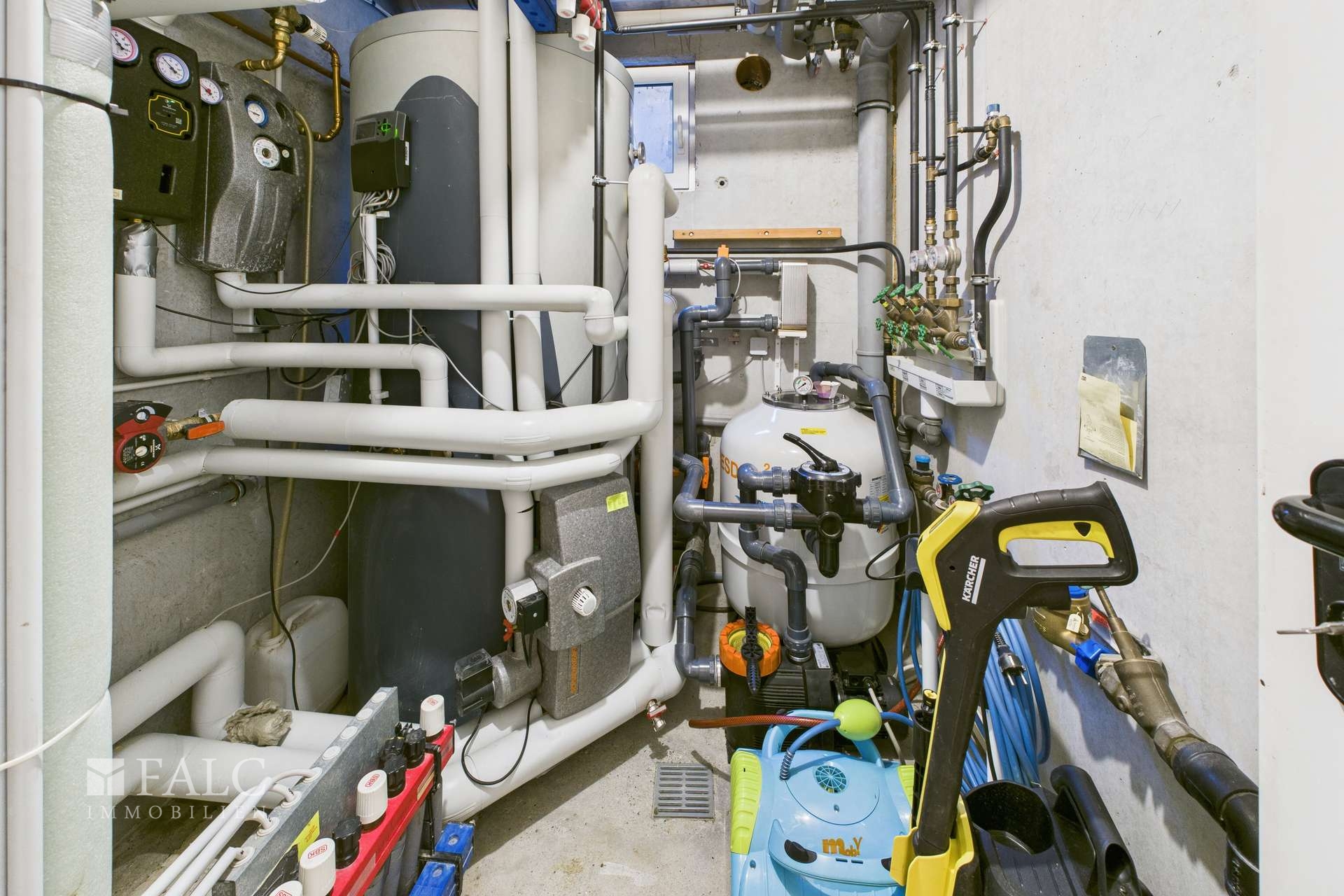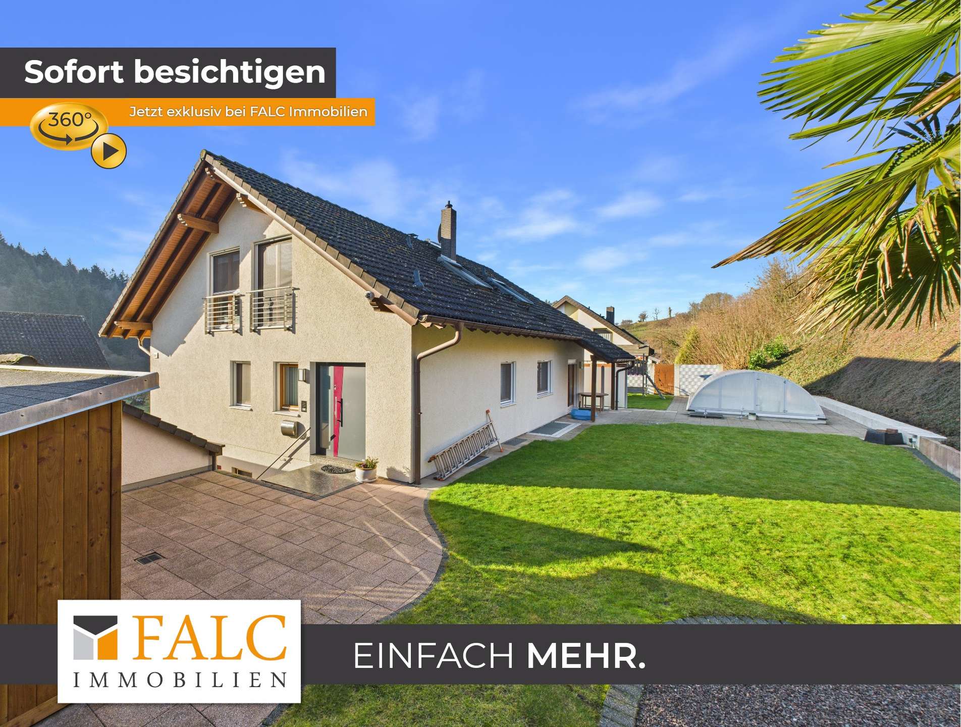 Auch der Außenbereich lässt keine Wünsche offen. Das beheizbare Schwimmbad mit passendem Dach und moderner Filteranlage lädt zu entspannten Stunden ein und rundet das hochwertige Gesamtbild dieser Immobilie perfekt ab.
