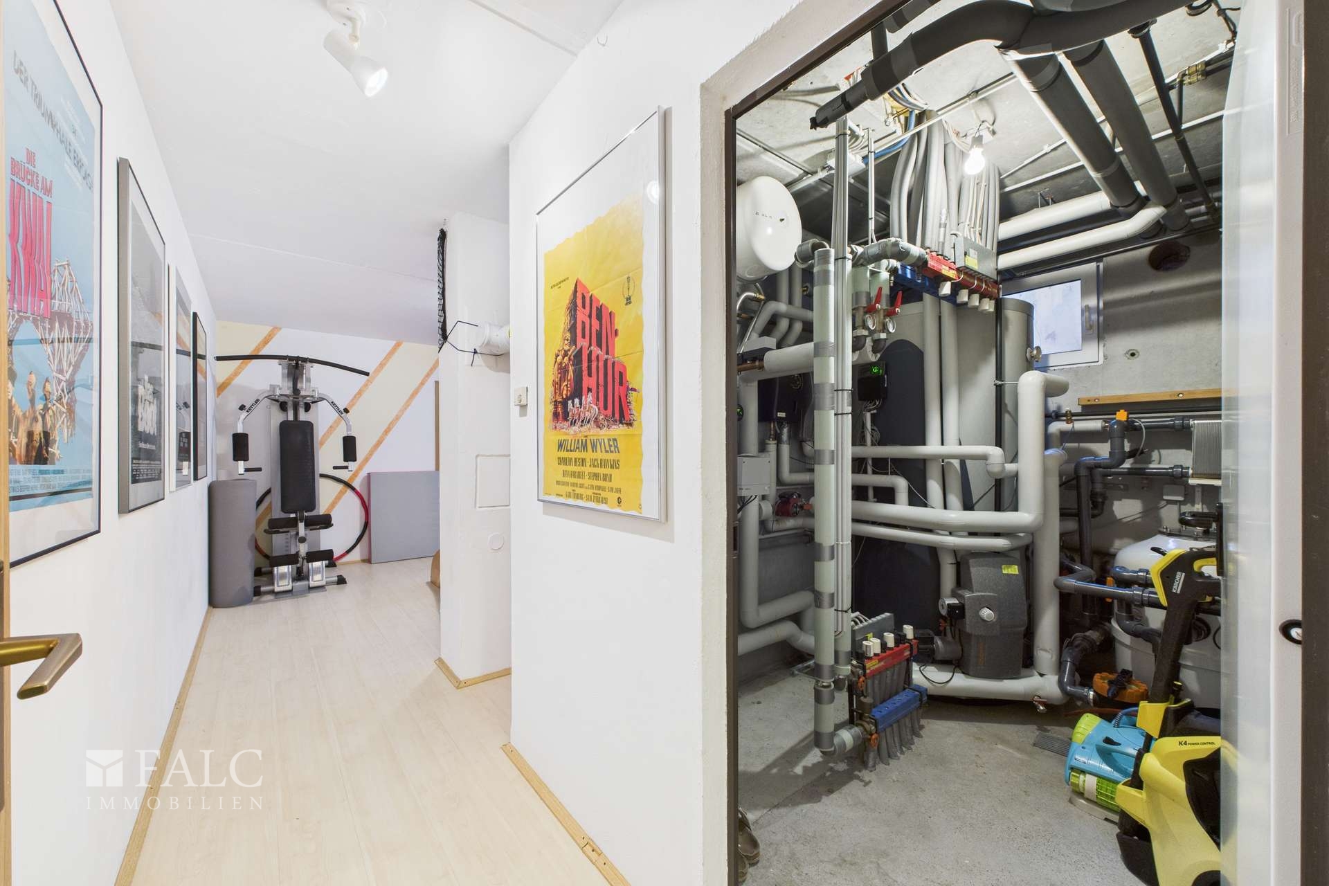 Im unteren Geschoss stehen neben Hauswirtschafts- und Technikraum, Werkraum ein großer Hobbyraum so wie eine vollwertige Wohnung mit Wohn-Esszimmer, Schlafzimmer, Küche und Bad zur Verfügung – ideal für Hobby, Gäste oder Mehrgenerationennutzung.