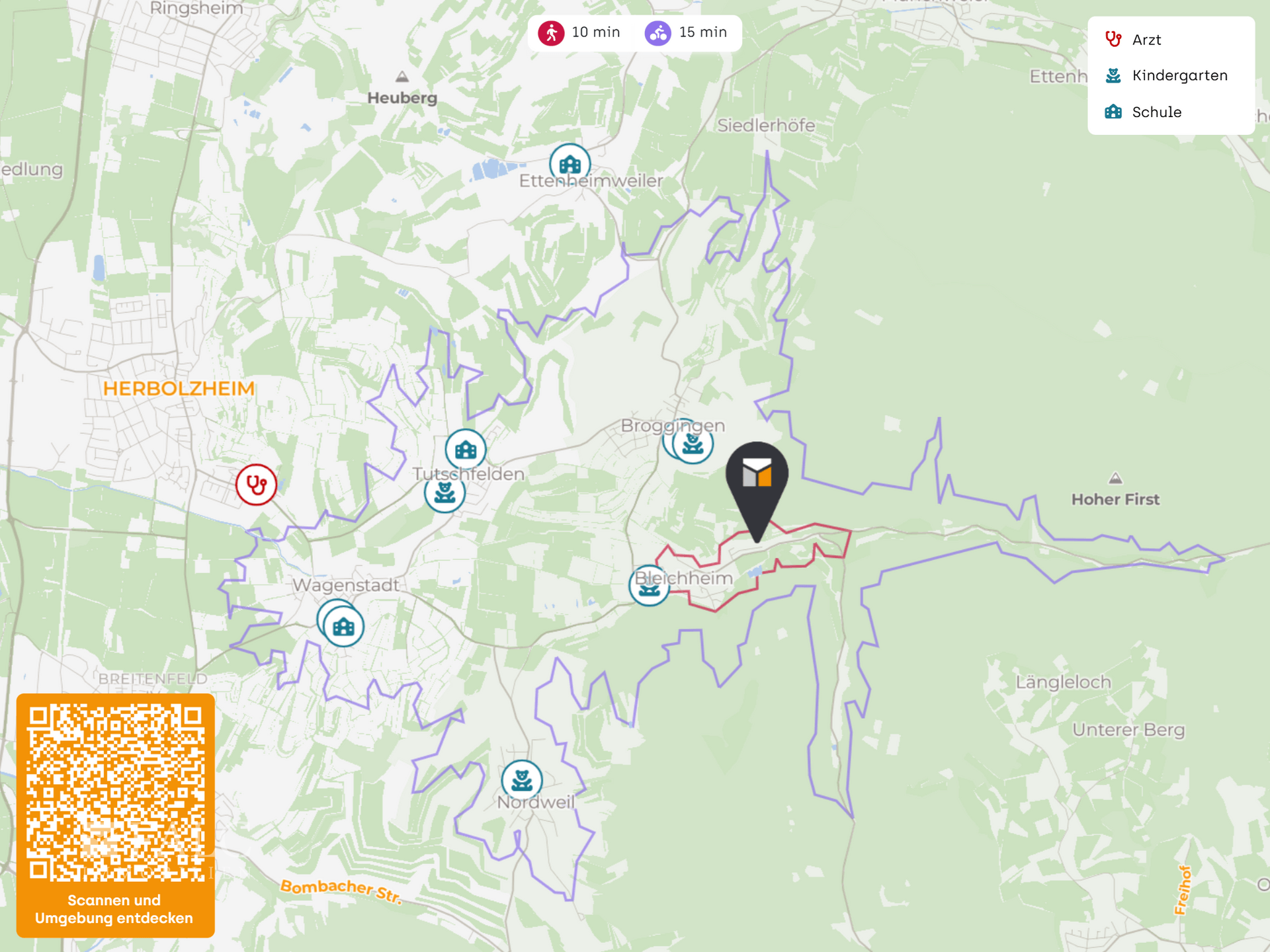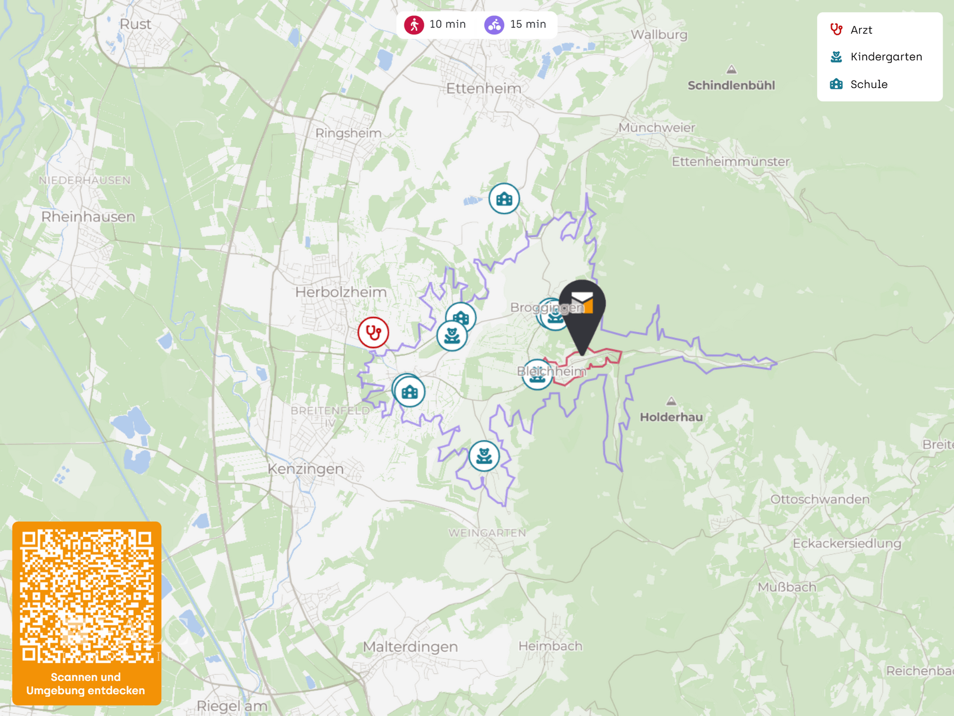 Die nächste Bushaltestelle Bleichheim Vogtstraße liegt in ca. 700 m Entfernung. Der Bahnhof Herbolzheim Breisgau ist in ca. 5 km erreichbar und bietet eine gute Anbindung in der Region. Mit dem Auto ist die Autobahn A5 über die Anschlussstelle Herbolzheim schnell erreichbar. Für Flugreisen bieten sich mehrere Flughäfen in der weiteren Umgebung an, darunter der EuroAirport Basel Mulhouse Freiburg.