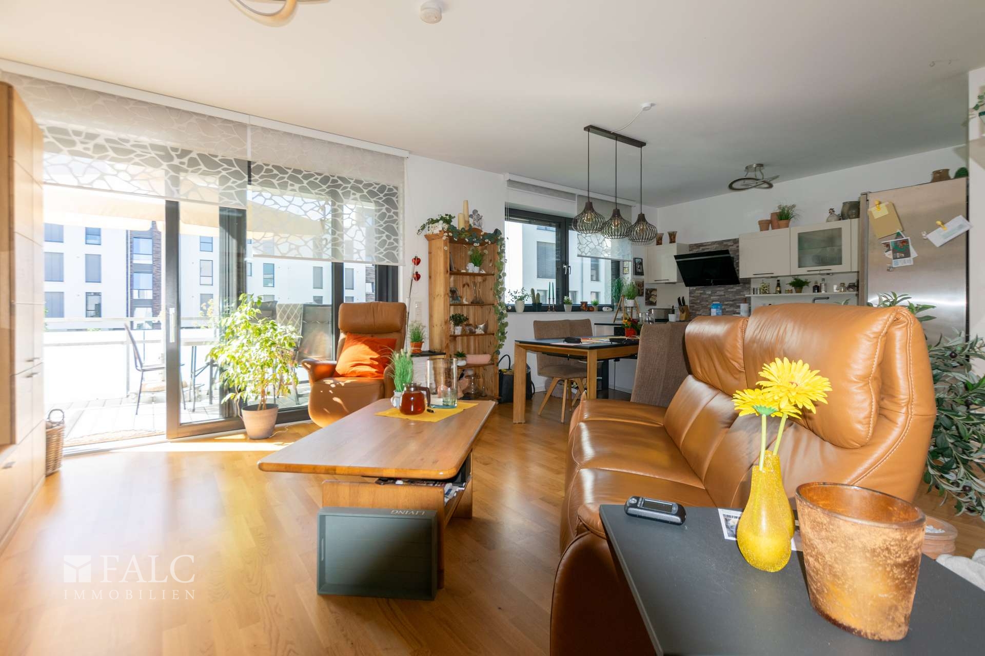Vom Wohnzimmer aus gelangt man über eine Schiebetür auf den nach Südwesten ausgerichteten Balkon – ideal für sonnige Nachmittage und laue Abende.