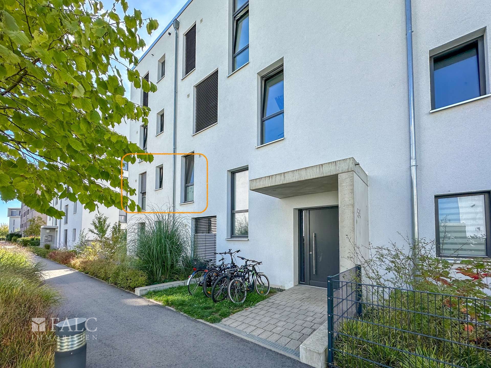 Diese großzügige und lichtdurchflutete 4-Zimmer-Wohnung befindet sich im 1. Obergeschoss eines modernen, architektonisch ansprechenden 8-Parteienhauses aus dem Jahr 2019 (Erbpacht)Das Gebäude wurde im energiesparenden KfW-55-Standard errichtet und verfügt über die Energieeffizienzklasse A+.