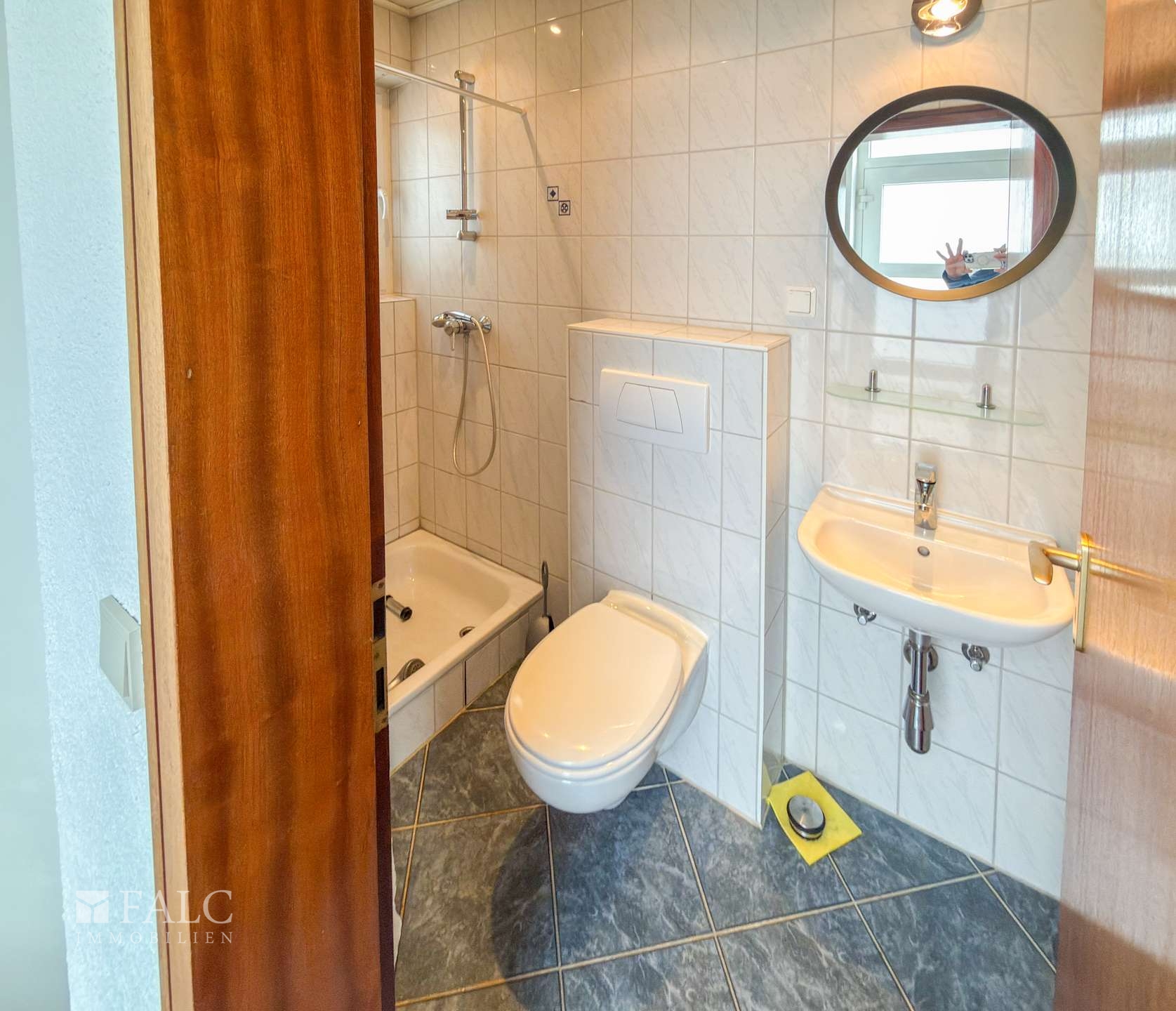 In Küche und Bad wurden pflegeleichte Fliesenböden verlegt – praktisch und zugleich stilvoll. Das Tageslichtbad verfügt über Waschbecken, Dusche und WC und ist deckenhoch mit hellen Fliesen versehen, so dass Sie Farbakzente ganz nach Ihren Lieblingsfarben setzen können.