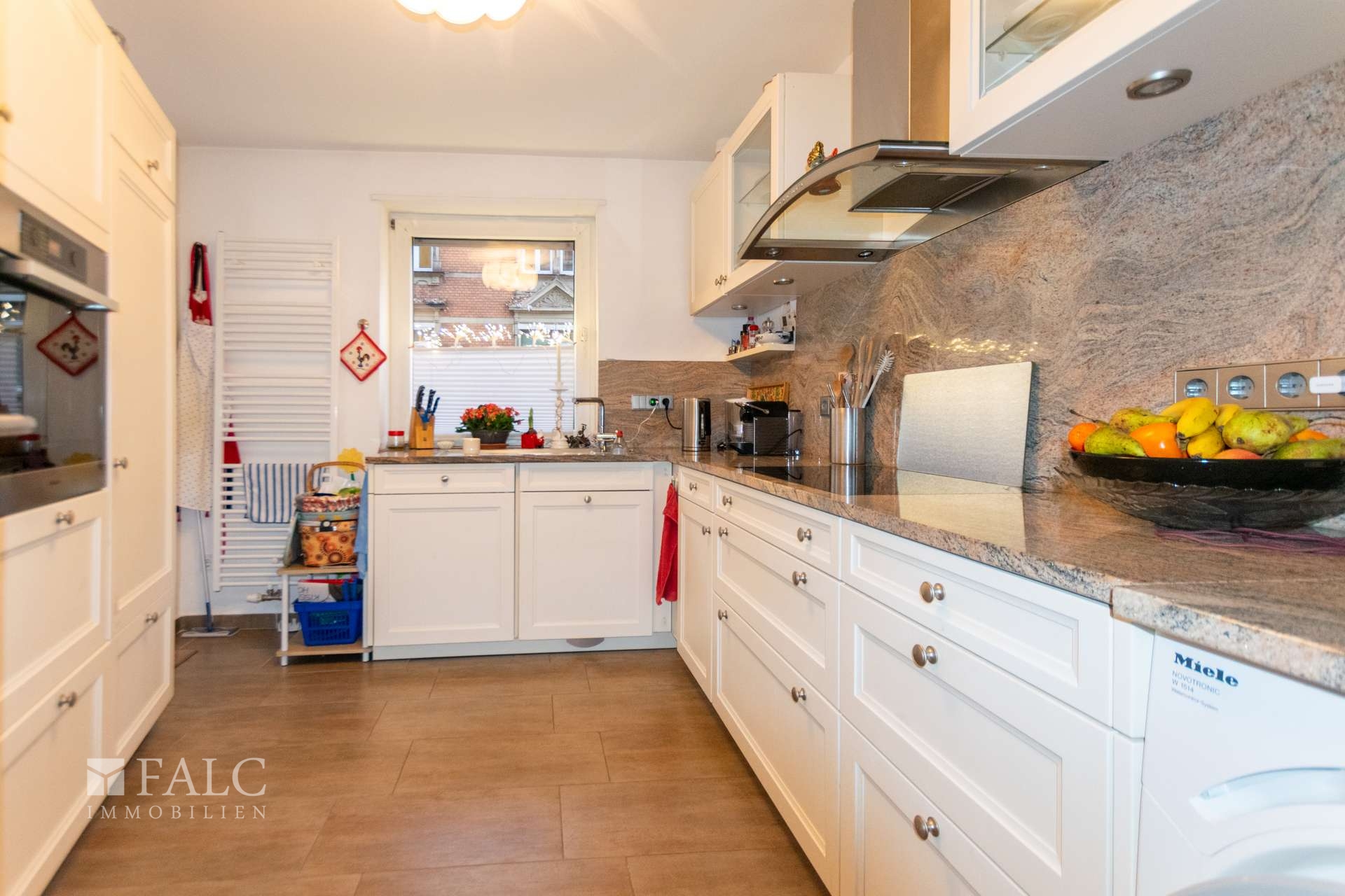 Ein besonderes Highlight ist die im Kaufpreis enthaltene, weiße Einbauküche im rustikalen Stil. Sie ist vollständig ausgestattet mit hochwertigen Miele-Geräten, darunter ein Backofen, ein Cerankochfeld, eine Dunstabzugshaube, eine Spülmaschine, eine Waschmaschine sowie ein Kühlschrank, und bietet damit beste Voraussetzungen für komfortables Kochen und den täglichen Bedarf.