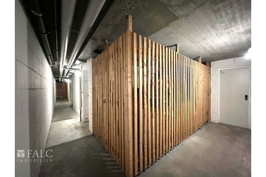 Ein Tiefgaragenstellplatz sowie ein eigener Kellerraum gehören zur Wohnung. Zusätzlich stehen ein gemeinschaftlicher Fahrradkeller und ein Waschmaschinenraum zur Verfügung.