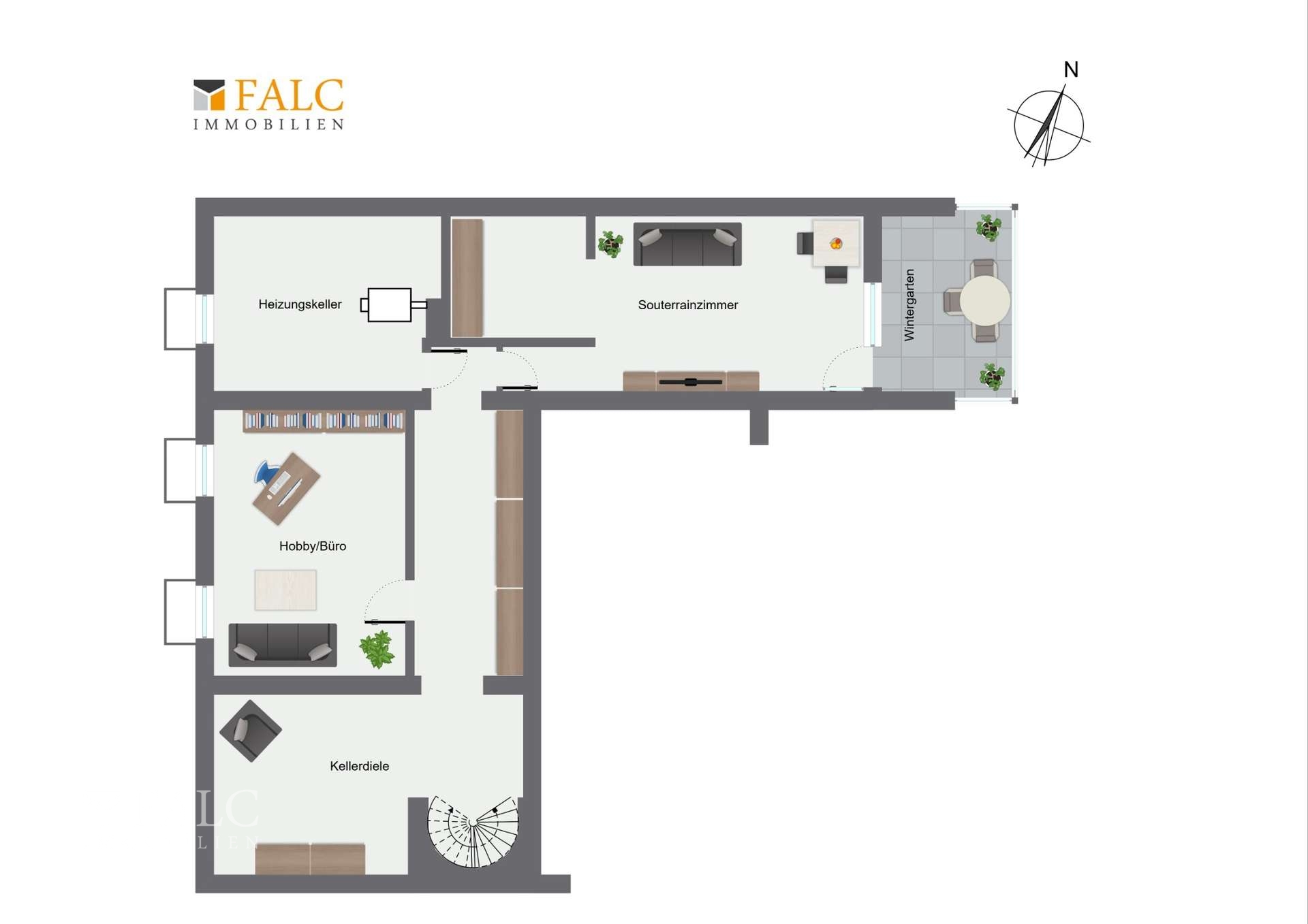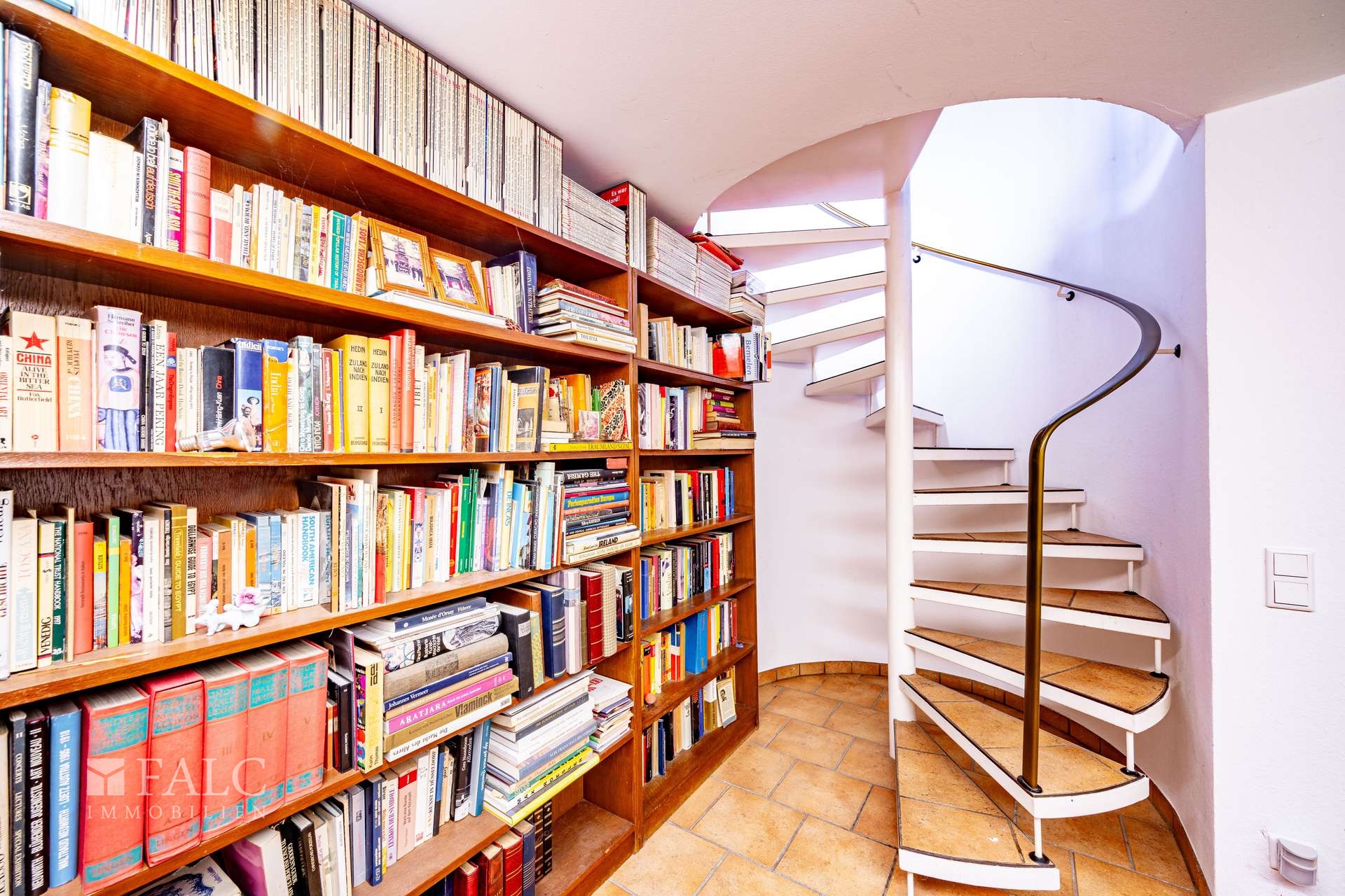 Zurück, über den Eingangsbereich, gelangen Sie über die Treppe in das Untergeschoss. Neben Stauräumlichkeiten sowie der Waschküche befinden sich hier weitere Zimmer. Besonders, dass am Ende des Flurs gelegene Schlafzimmer mit Ankleidezimmer und Wintergarten ist als Highlight anzusehen.