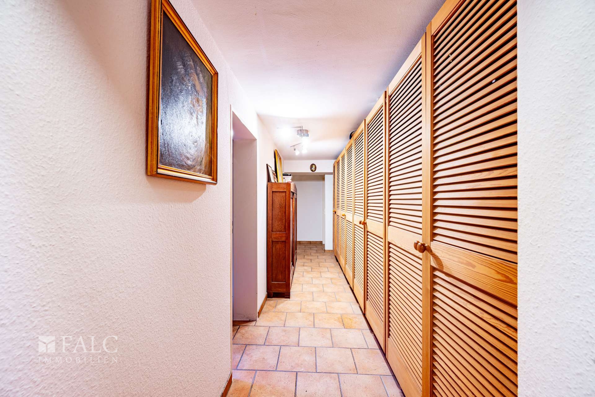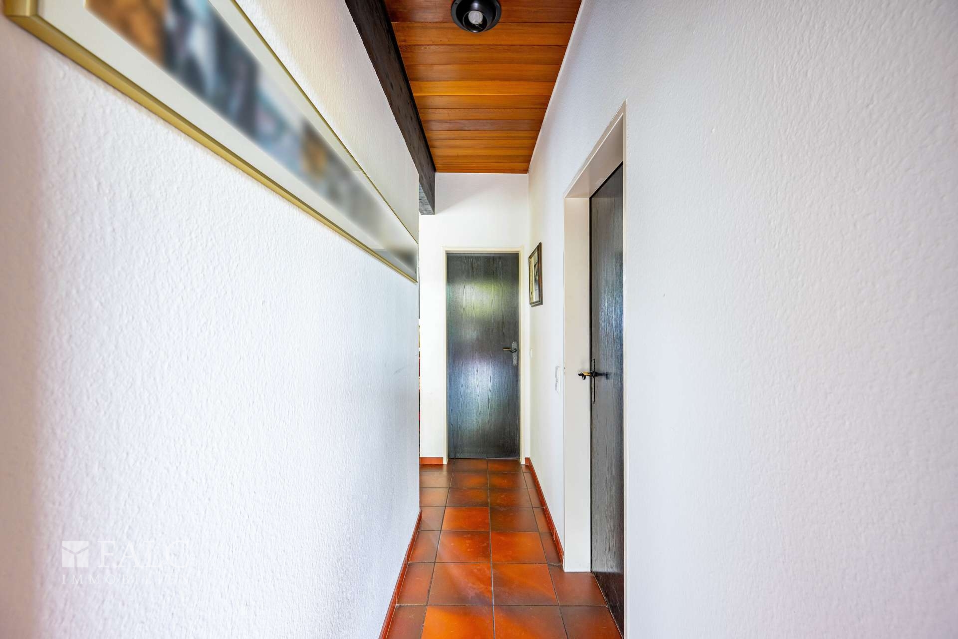 Willkommen in diesem charmanten Bungalow, der 1976 erbaut wurde und mit einer großzügigen Wohnfläche von rd. 206 m² überzeugt. Beim Betreten des Hauses gelangen Sie in einen einladenden Eingangsbereich, der Ihnen Zugang zur Küche, dem Wohnzimmer und in das Untergeschoss bietet. Hier finden Sie das praktische Gäste-WC, ideal für Besucher sowie ein Abstell- oder Garderobenraum, der den Alltag erleichtert.