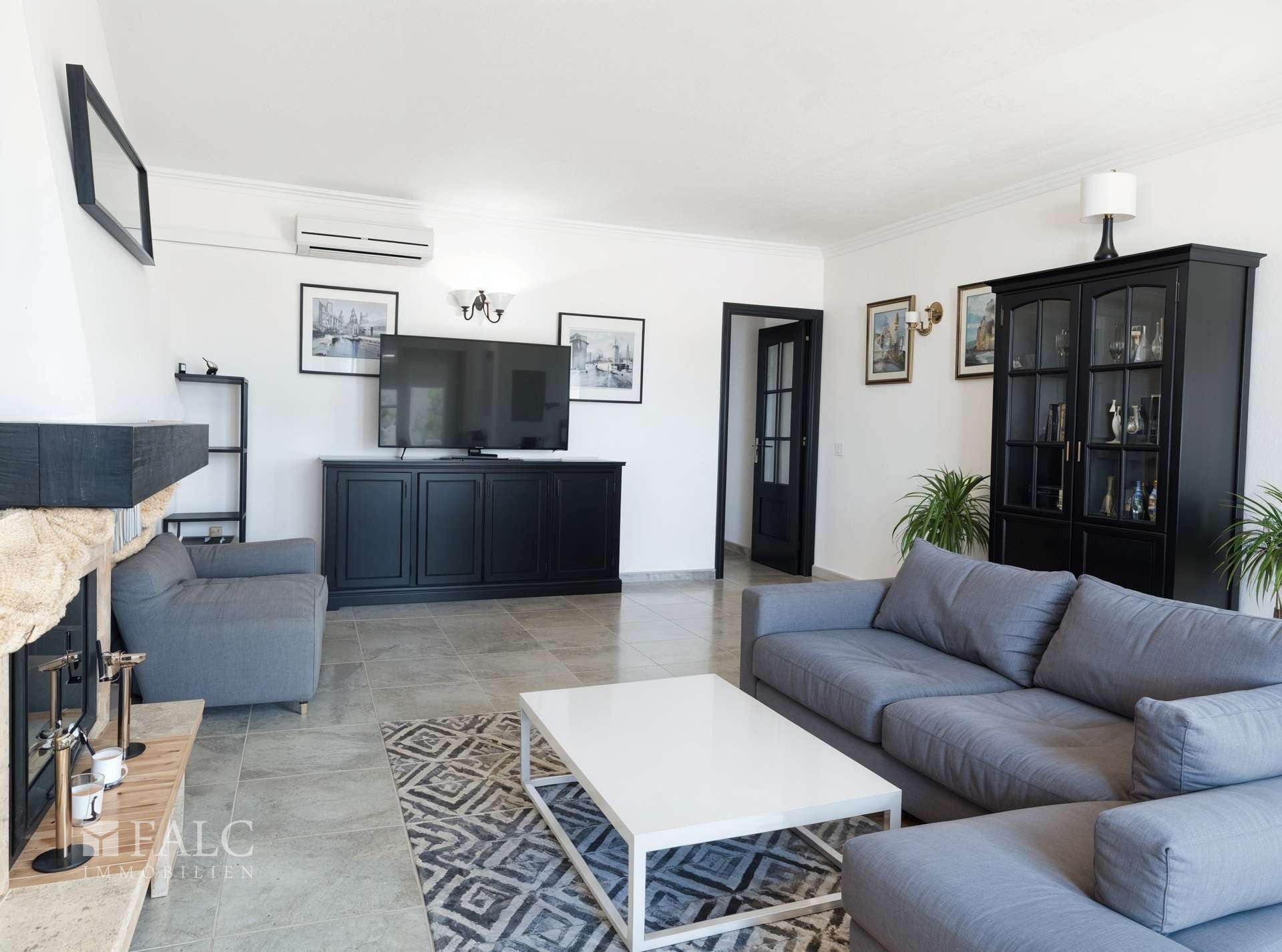 Im Obergeschoss befinden sich drei helle Schlafzimmer. Das Hauptschlafzimmer verfügt über eine große, sonnige Terrasse, und eines der anderen Schlafzimmer bietet einen eigenen Balkon. Ein weiteres modernisiertes Badezimmer rundet diese Etage ab. Das gesamte Haus ist lichtdurchflutet und mit PVC-Fenstern, individueller Klimaanlage in jedem Raum ausgestattet.