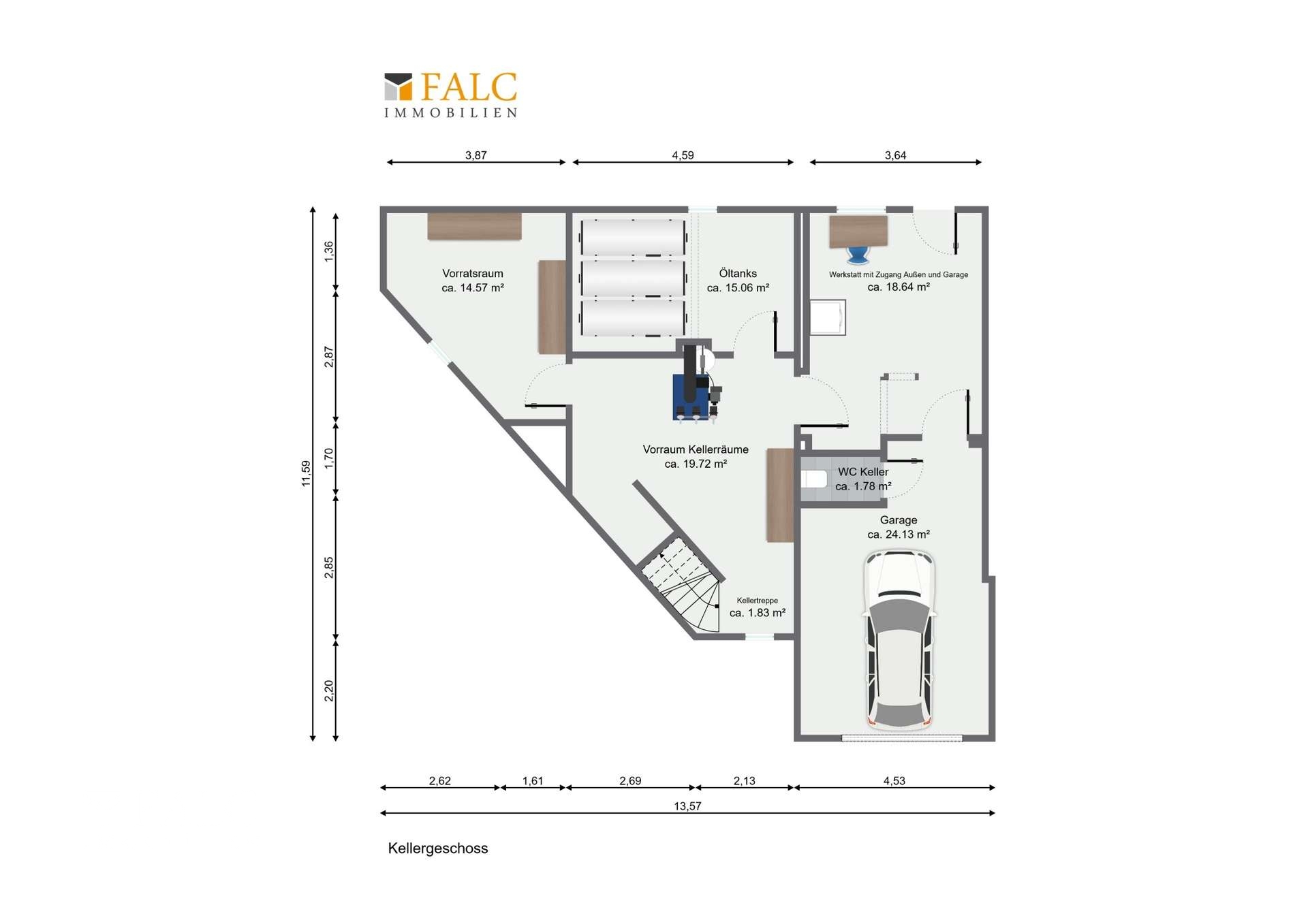 - Keller inkl. direktem Zugang zu einer der vorhandenen Garagen, sowie Waschküche und Vorratsräumen vorhanden