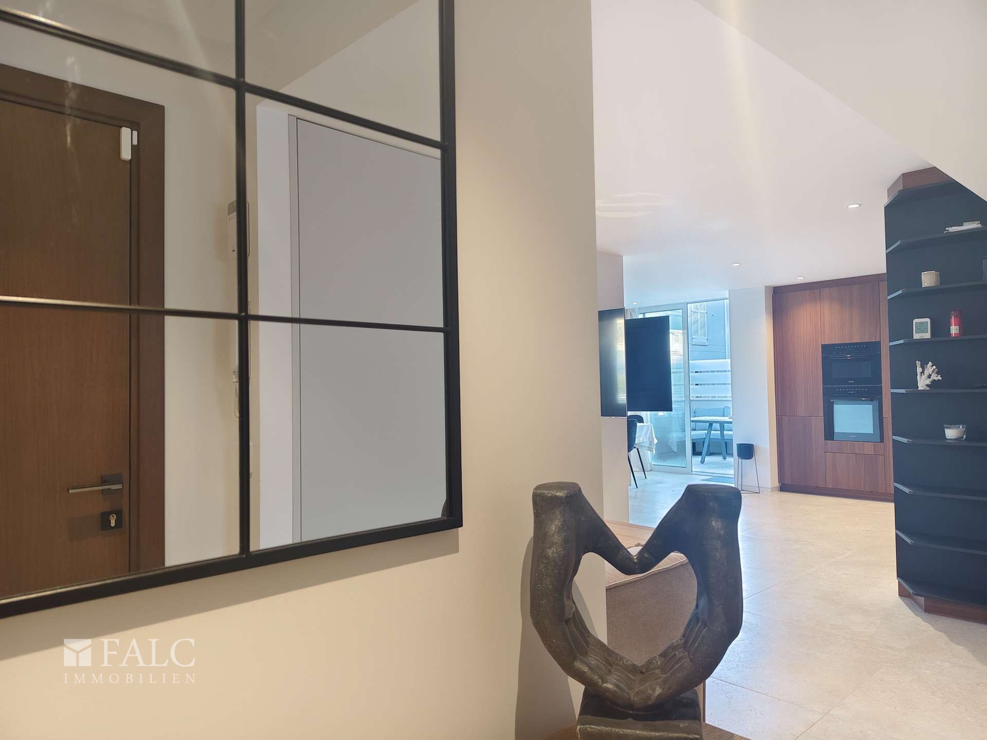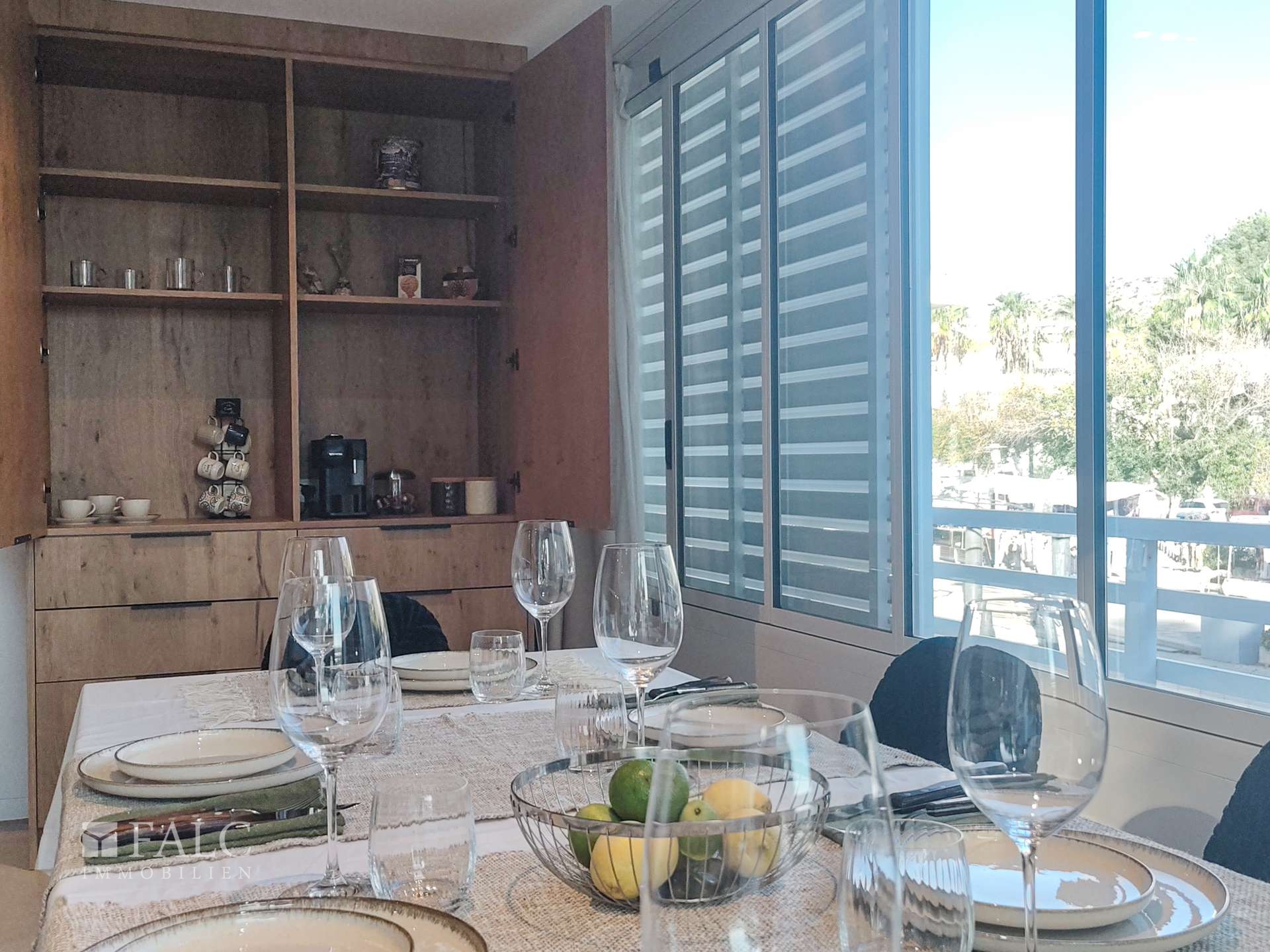 2025 vollständig renoviert, verbindet dieses Apartment im ersten Obergeschoss großzügige Innenräume mit einer seltenen, weitläufigen Privatterrasse – ideal für das ganzjährige mediterrane Leben. Der Grundriss bietet drei Schlafzimmer (eines en suite), zwei moderne Badezimmer und einen offenen Wohn-/Essbereich mit einer voll ausgestatteten, hochwertigen Küche (Miele), die sowohl für den täglichen Gebrauch als auch zum Empfangen von Gästen konzipiert ist.