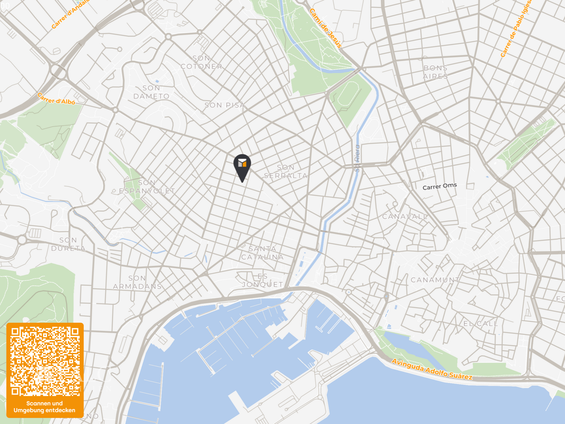 Camp d’En Serralta liegt direkt außerhalb des historischen Zentrums, zwischen Santa Catalina, Son Cotoner und Son Dameto, und bietet somit eine zentrale, fußläufige Lage mit allen Alltagsannehmlichkeiten und nahegelegenen Parks (Sa Riera, Sa Feixina/Passeig de Mallorca). Das Viertel gilt als praktisches und zunehmend beliebtes Wohngebiet, dank seiner Nähe zur Altstadt, zu den Einkaufsboulevards und zum lebendigen Hafenviertel von Santa Catalina.