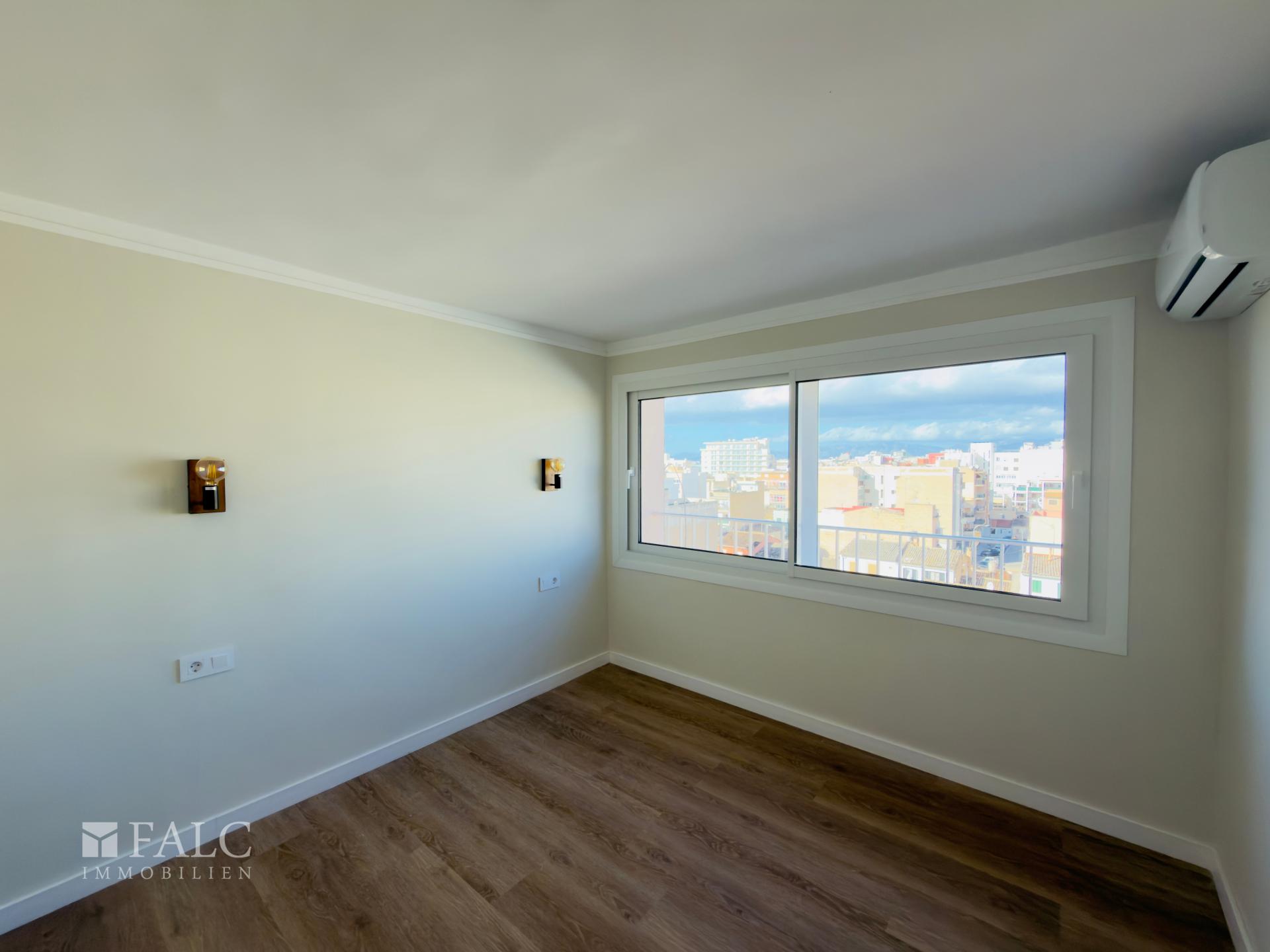 Zum Verkauf steht ein vollständig neu renoviertes 3-Zimmer-Apartment in El Arenal / Ses Cadenes, einem der beliebtesten Abschnitte der Playa de Palma. Die Wohnung liegt in der dritten Linie zum Meer und überzeugt durch ihre moderne Ausstattung, helle Räume, circa 80 m² Wohnfläche sowie eine großzügige Terrasse, von der Sie einen schönen Blick auf die Dächer von Arenal, das Meer und die umliegenden Berge genießen.