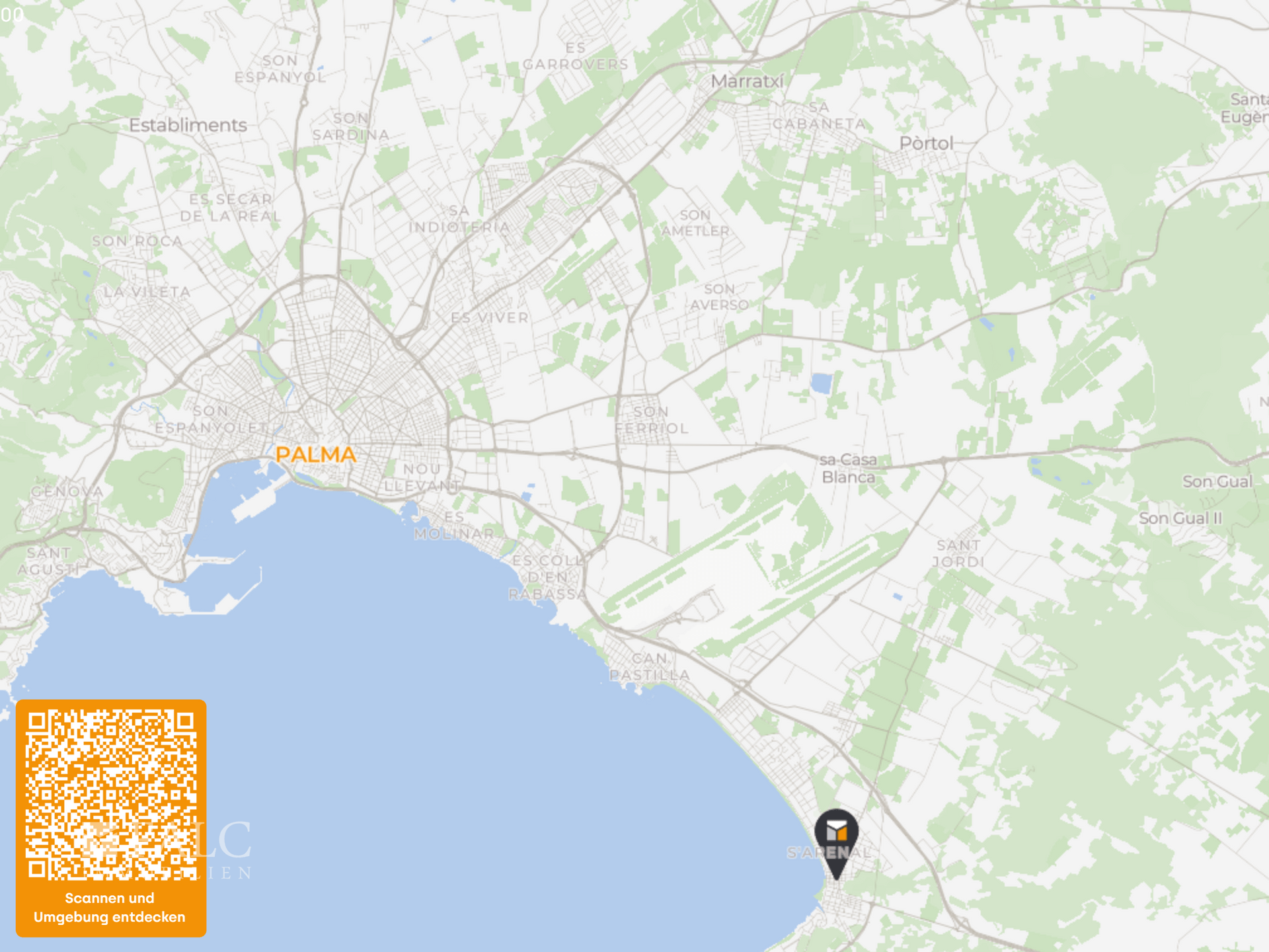 Für Freizeit und Sport sorgen der Plaça dels Nins Park, ideal für Spaziergänge und Picknicks, sowie das Iron Gym Arenal, nur rund 165 Meter entfernt. Die Anbindung an den öffentlichen Nahverkehr ist ausgezeichnet: Eine Bushaltestelle in ca. 180 Metern Entfernung bietet direkte Verbindungen ins Zentrum von Palma, während die Autobahn schnell erreichbar ist. Auch der Flughafen Palma de Mallorca liegt nur ca. 8 Kilometer entfernt, was die Lage besonders attraktiv für internationale Reisende macht.