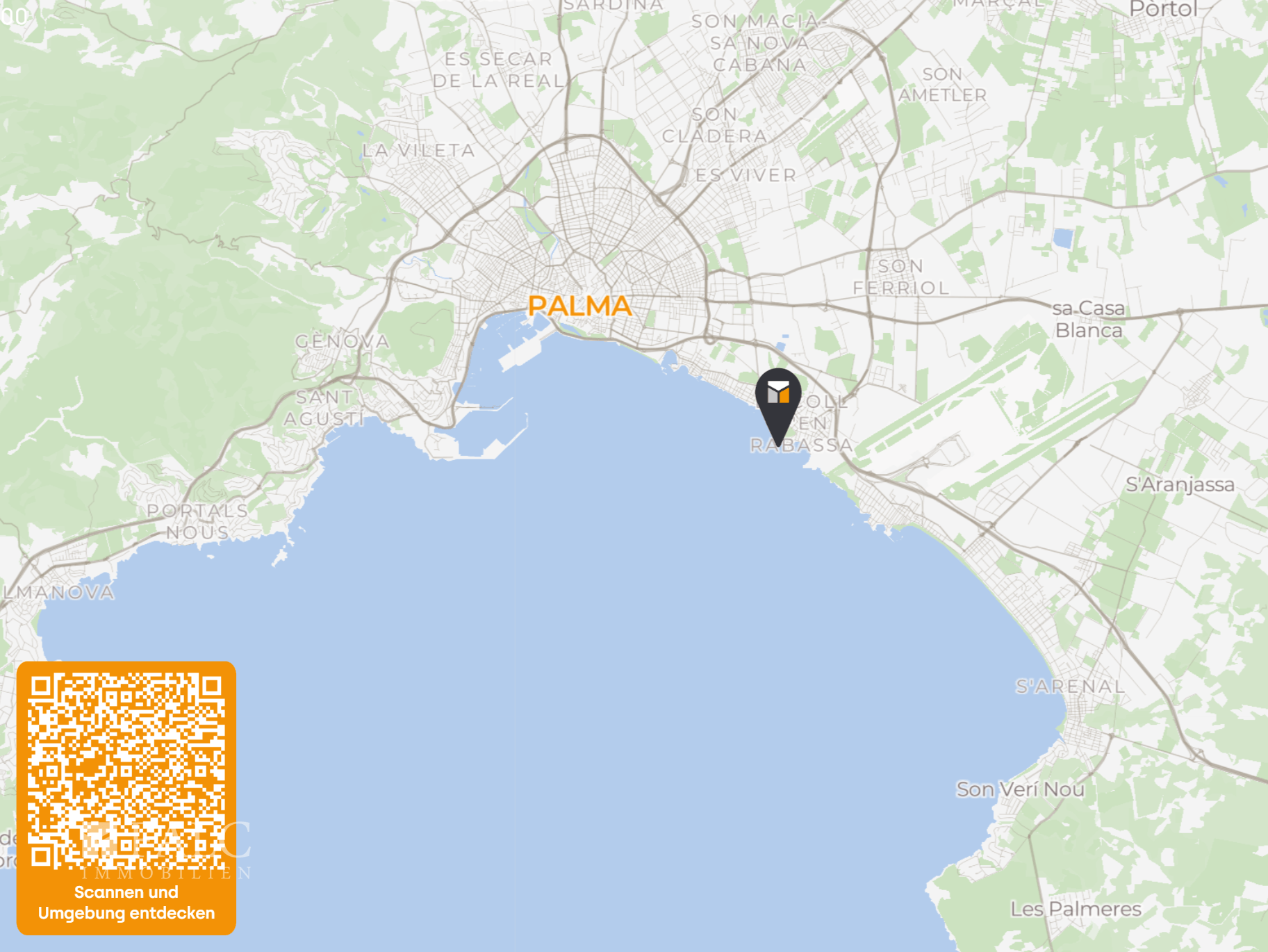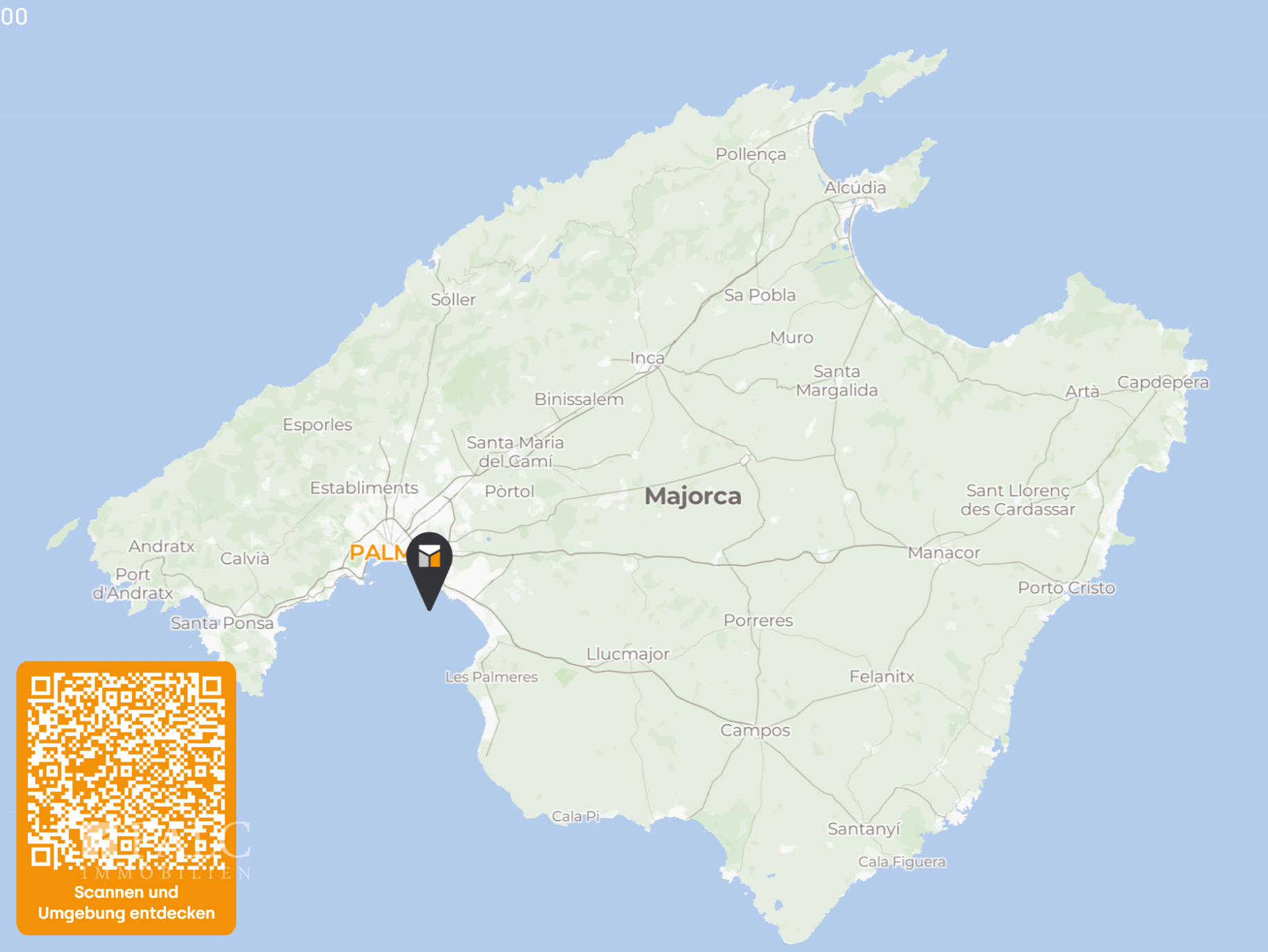 Für Pendler oder Reisende bietet die Lage dieser Immobilie zahlreiche Vorteile. Die nächste Bushaltestelle ist etwa fünf Gehminuten entfernt und bietet eine direkte Anbindung an das öffentliche Verkehrsnetz von Palma. Die Verbindungen zu regionalen Autobahnen, wie der Ma-19, können innerhalb von circa zehn Fahrminuten erreicht werden und der internationale Flughafen von Palma de Mallorca ist ca. 10 Kilometer entfernt, was eine bequeme Anbindung an nationale und internationale Ziele ermöglicht.