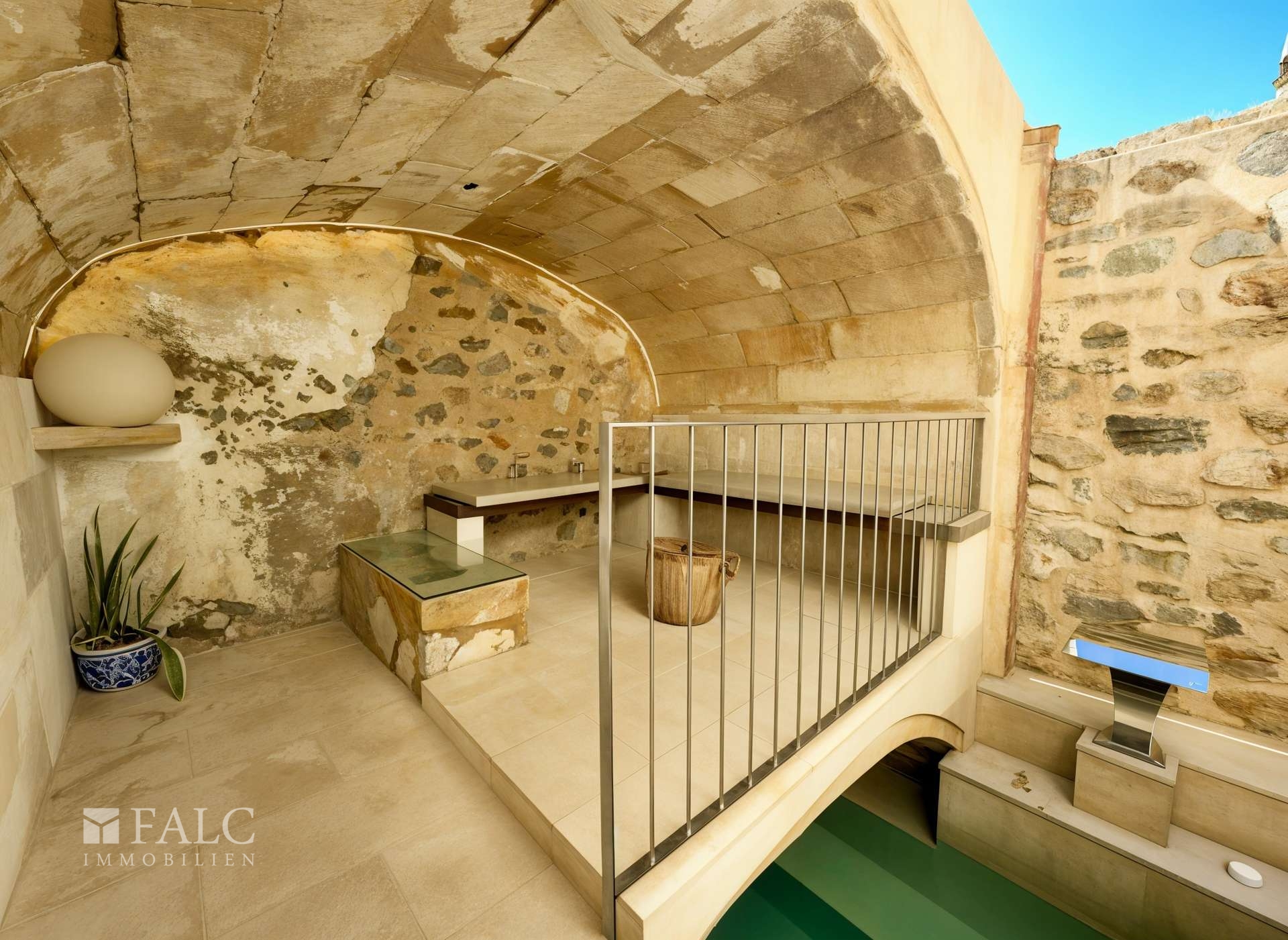 Bereits beim Betreten des Hauses wird die gelungene Symbiose aus traditioneller Architektur und stilvoller Renovierung spürbar. Authentische Details wie Holzbalkendecken, Natursteinwände und handgefertigte Elemente verleihen dem Anwesen einen unverwechselbaren Charme, während moderne Ausstattungen höchsten Wohnkomfort garantieren.