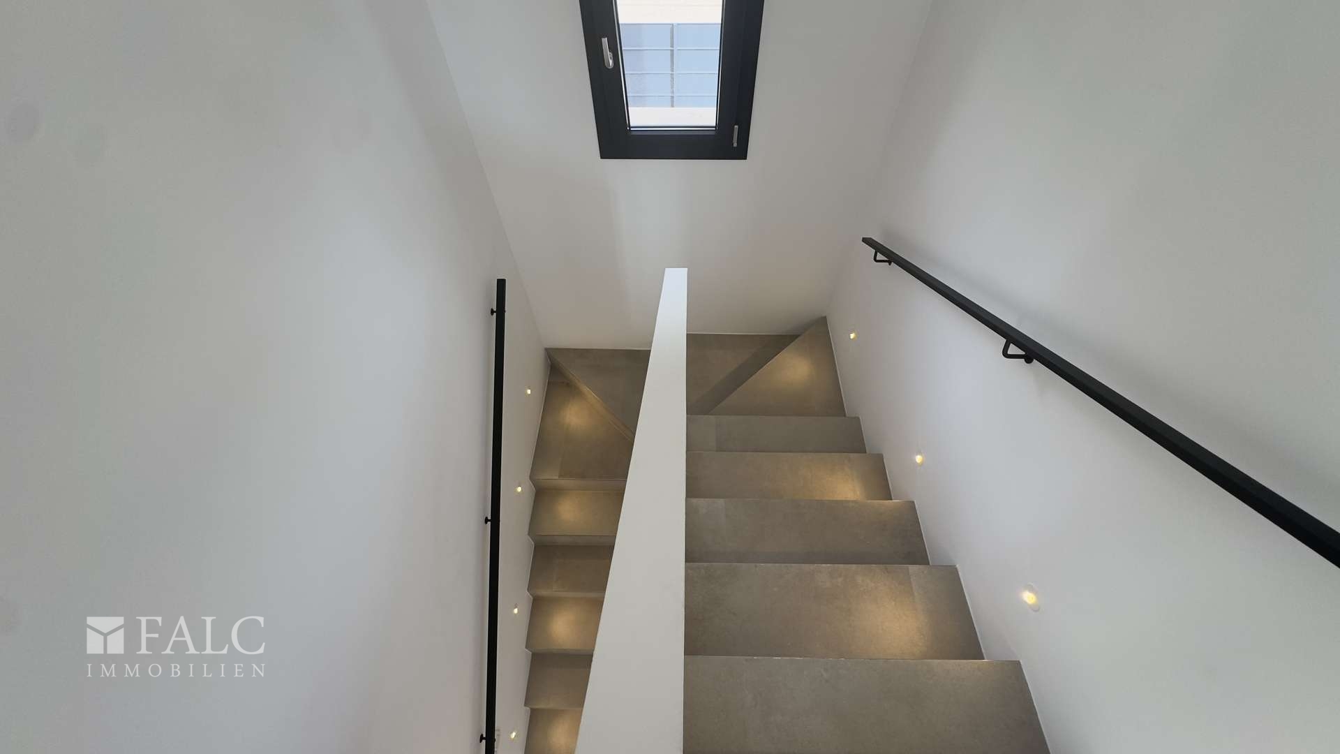 Über eine moderne Treppe gelangt man in das Obergeschoss, wo sich zwei komfortable Schlafzimmer befinden. Beide Schlafzimmer verfügen über ein elegantes Badezimmer en Suite und sind mit Einbauschränken ausgestattet, die viel Stauraum bieten.