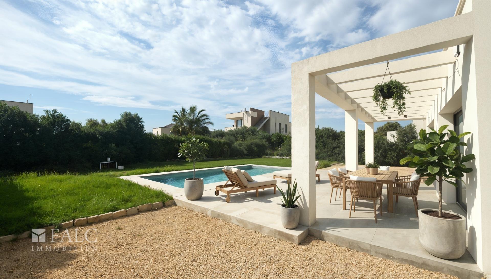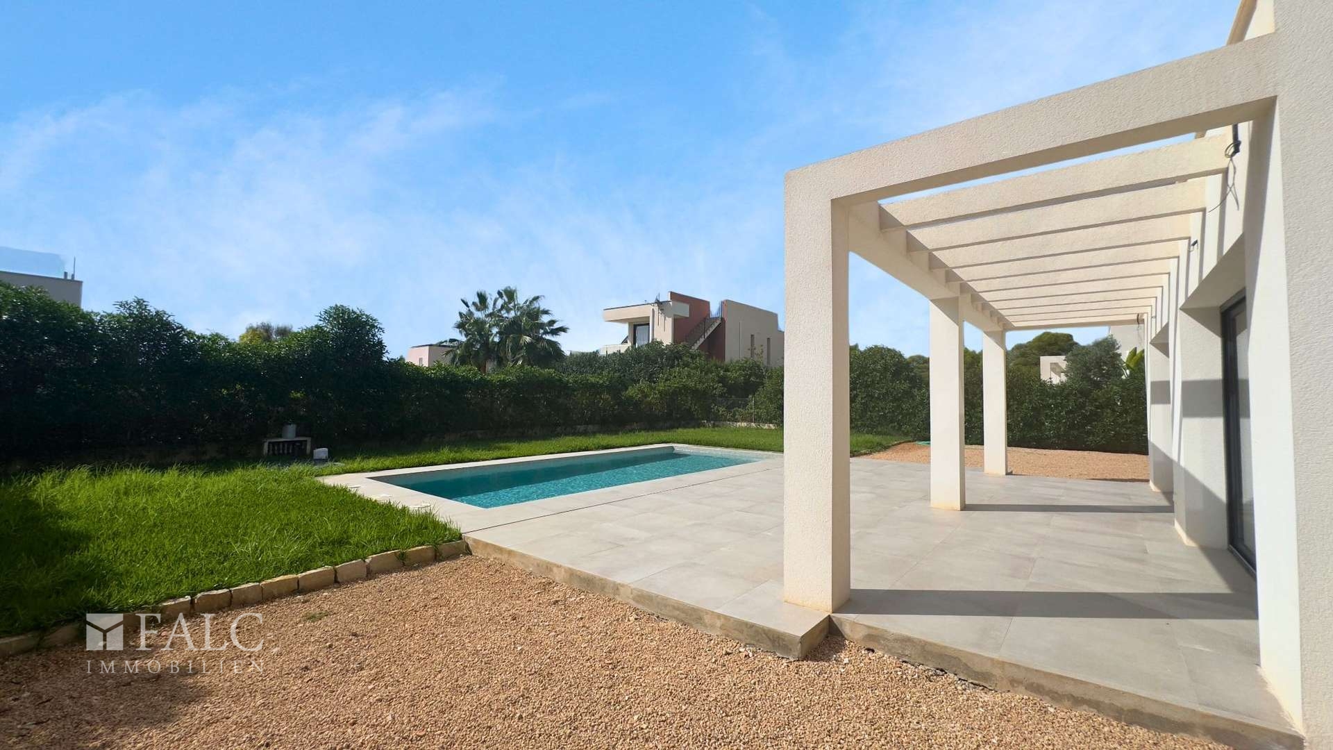 Zum Verkauf steht eine exklusive Villa in Cala Pi, gelegen in einer ruhigen Wohngegend am Torrent de Cala Pi. Diese hochwertige Immobilie bietet modernen Wohnkomfort auf circa 125 m² Wohnfläche und befindet sich auf einem großzügigen Grundstück von circa 606 m² mit einem schön angelegten Garten und privatem Pool.