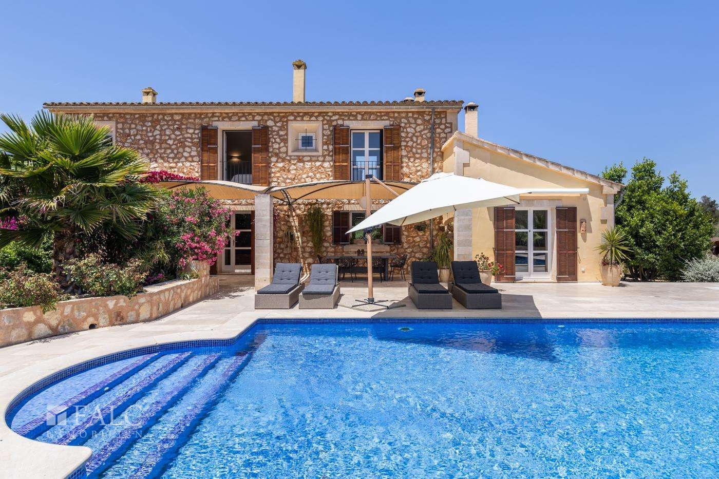 Im Inneren überzeugt das Haus durch ein harmonisches Zusammenspiel aus zeitgemäßer Architektur und traditionellen Elementen. Sichtbare Deckenbalken, Steinböden und Fensterläden aus hochwertigem Holz verleihen der Immobilie ihren mallorquinischen Charakter, während eine Fußbodenheizung, moderne Klimaanlagen und doppelt verglaste Fenster für angenehme Temperaturen zu jeder Jahreszeit sorgen. Der großzügige Wohnbereich mit Kamin schafft eine gemütliche Atmosphäre, und die voll ausgestattete, moderne Küche lässt keine Wünsche offen.