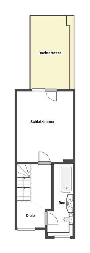 Die neue Holztreppe im Entree führt Sie in das erste OG, wo Sie über eine kleine Diele ins Schlafzimmer mit direktem Zugang zur Dachterrasse gelangen. Von hier aus wird Ihr Blick weit über die Stadt Eschweiler schweifen und Sie können einen fantastische Sonnenaufgänge erleben.