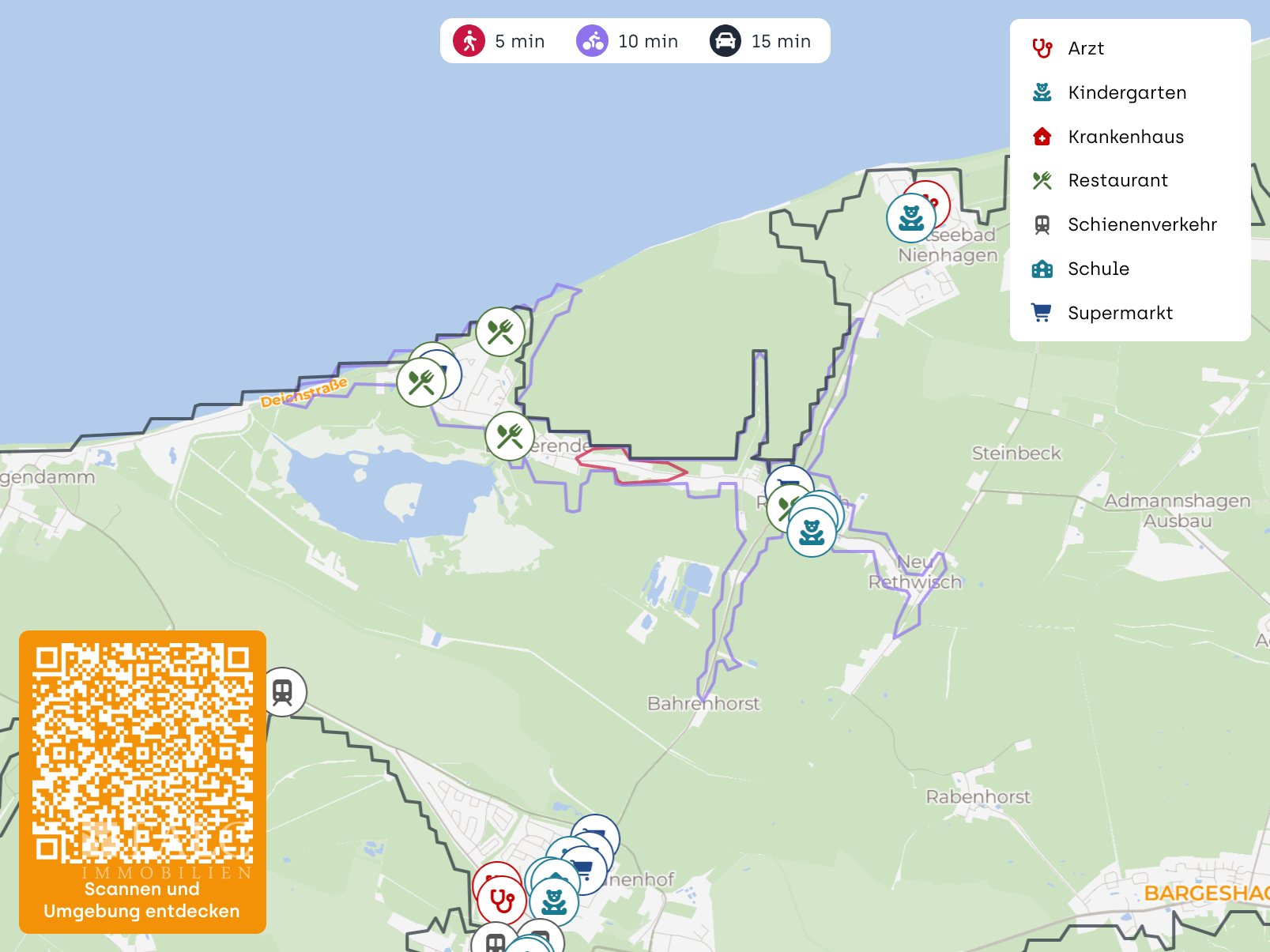 Die Immobilie befindet sich in 18211 Börgerende-Rethwisch, einer charmanten und beliebten Ostseegemeinde zwischen Heiligendamm und Warnemünde im Landkreis Rostock. Der Ort vereint die Ruhe einer naturbelassenen Küstenlandschaft mit der Nähe zu bekannten Ostseebädern und bietet damit eine perfekte Balance zwischen Erholung und Erreichbarkeit.