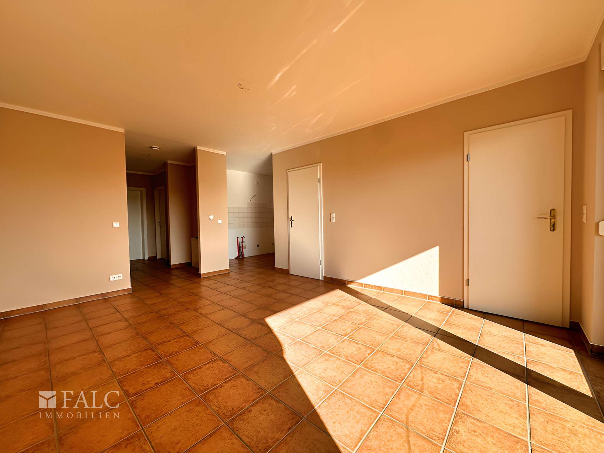 Der Mittelpunkt der Wohnung ist der offene Wohn-, Küchen- und Essbereich, der dank großer Fensterflächen viel Tageslicht bietet und ein angenehmes Wohngefühl schafft. Von hier aus gelangen Sie direkt auf den Balkon, von dem sich ein schöner, weiter Blick ins Grüne eröffnet – perfekt, um die Ruhe der Umgebung zu genießen.
