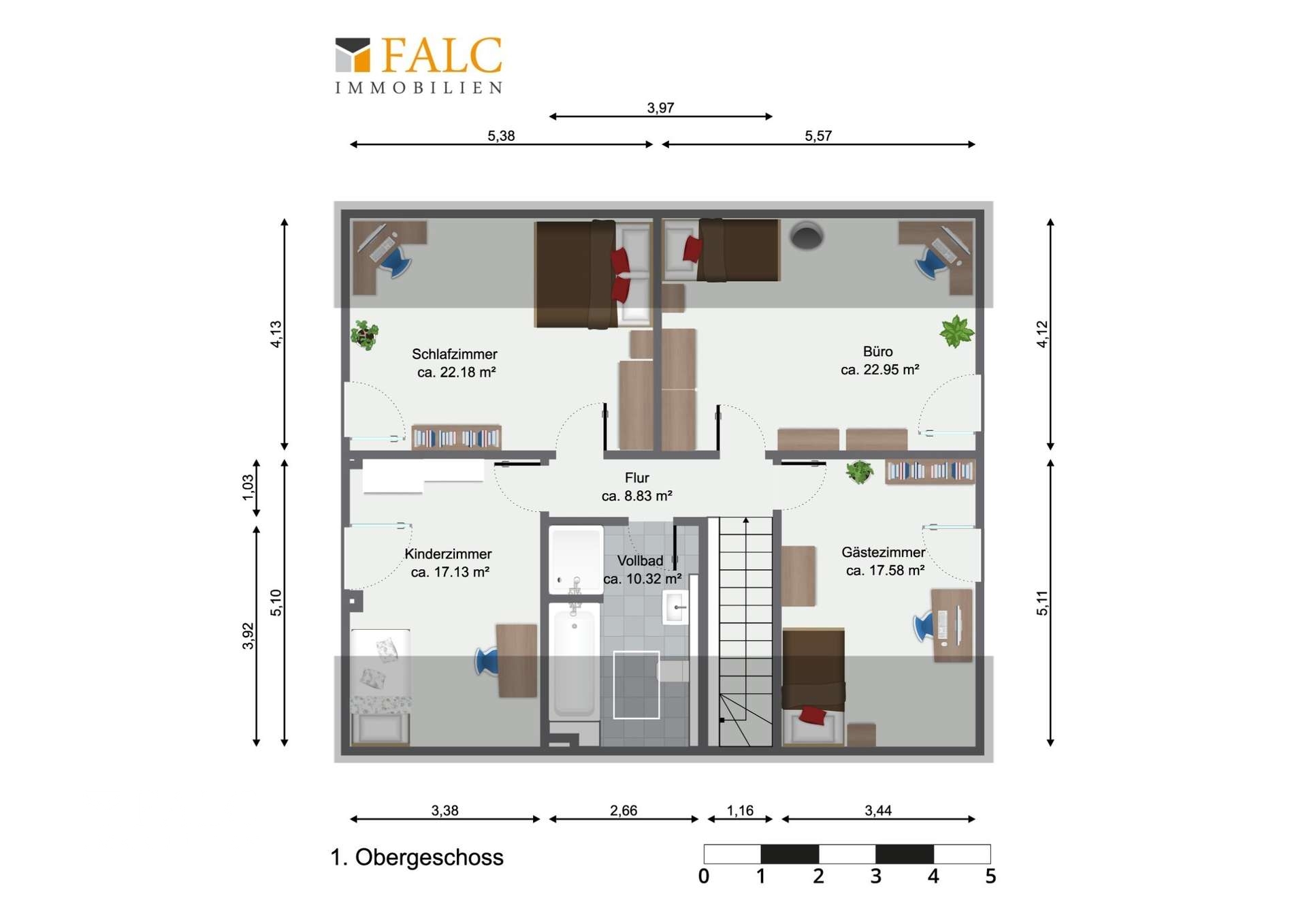 Im Obergeschoss befinden sich die Schlafräume des Hauses sowie ein Vollbad.