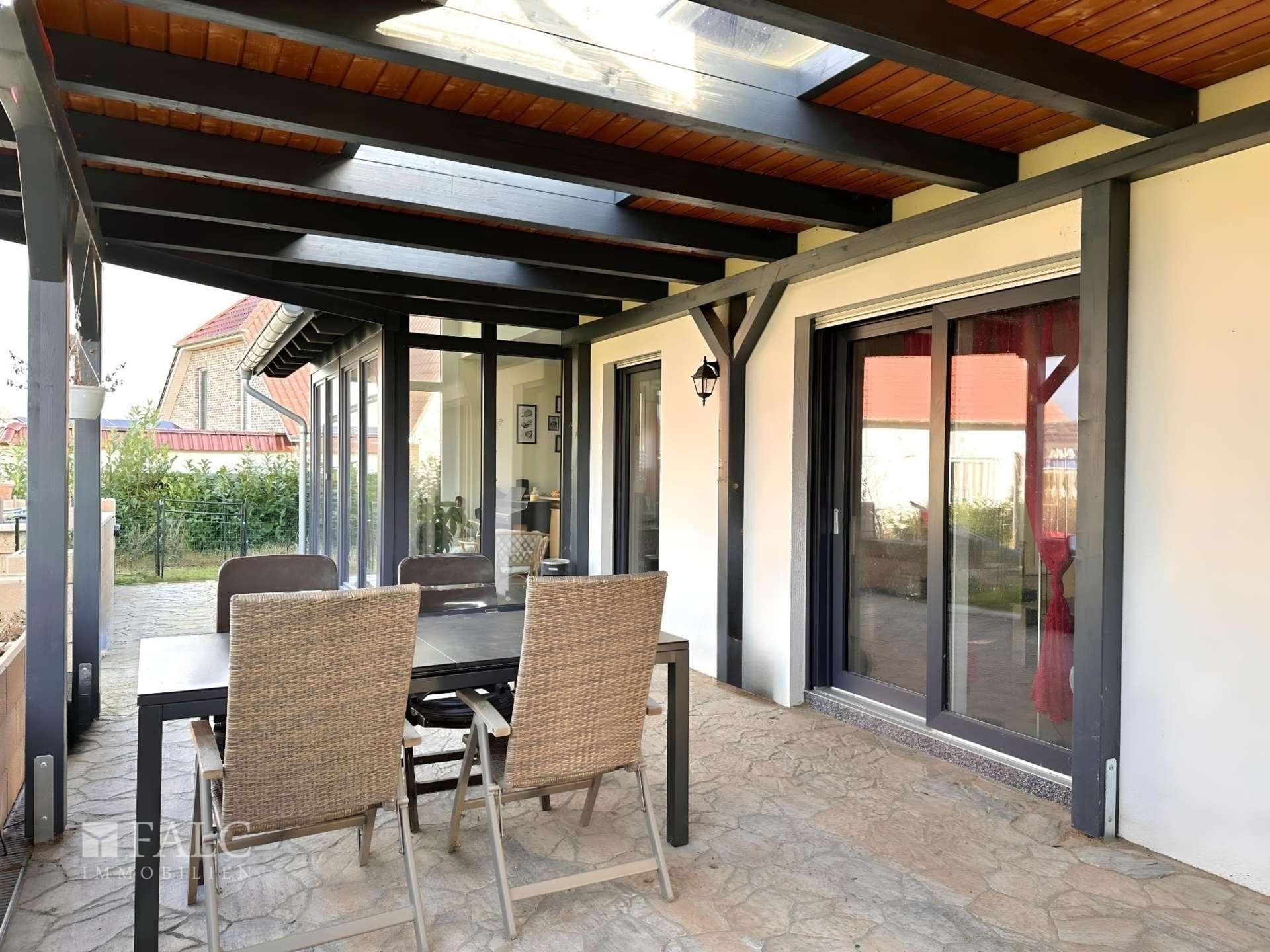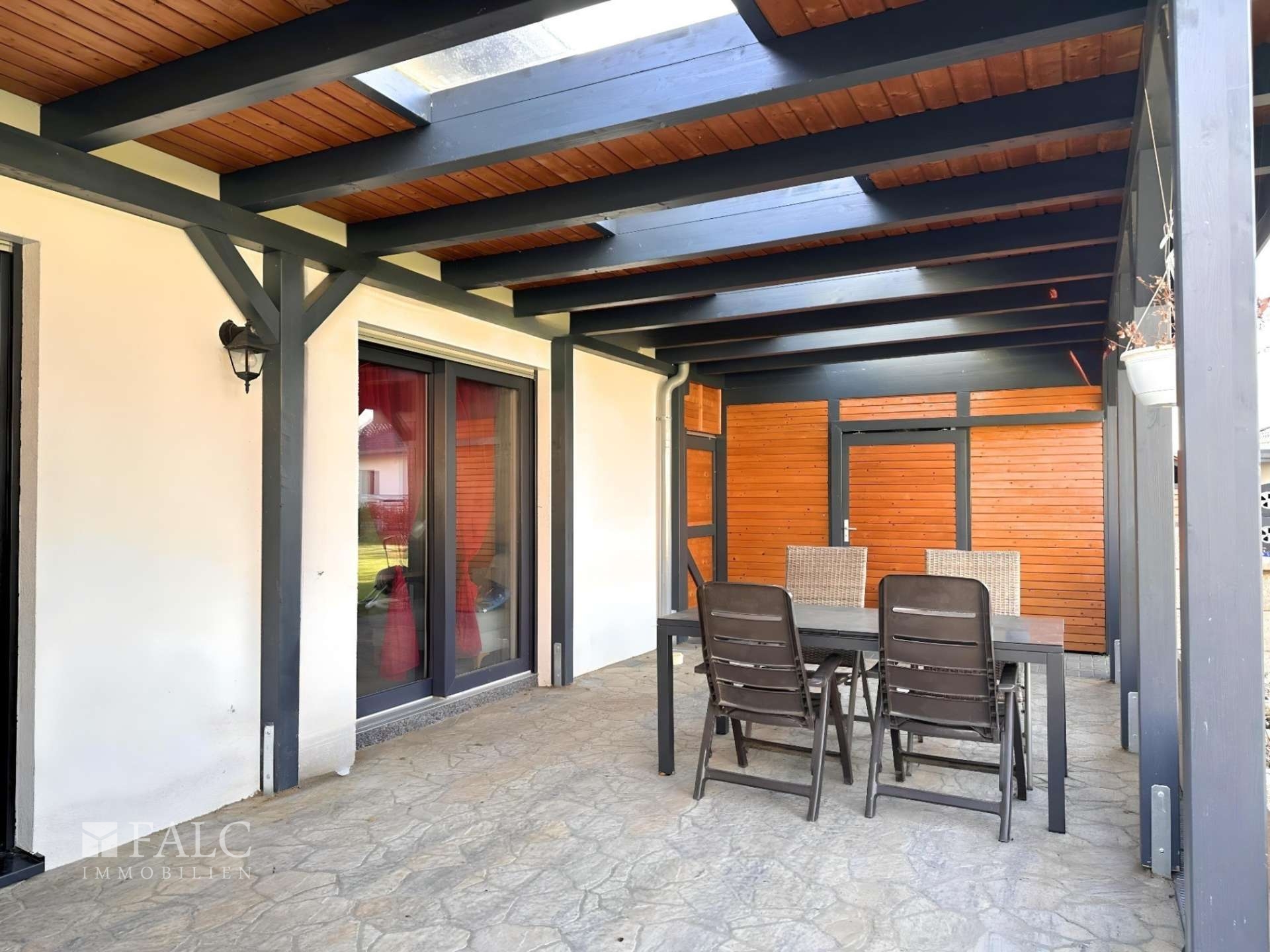 Der Außenbereich dieses exklusiven Anwesens lässt ebenfalls keine Wünsche offen. Eine überdachte Terrasse mit Glaskuppeln und eine integrierte Grillecke laden dazu ein, das Leben im Freien zu genießen. Egal ob sonniger Sommertag oder lauer Abend, hier können Sie den Garten in vollen Zügen nutzen und dabei stets einen geschützten Platz im Freien genießen. Die großzügige Terrasse schafft die perfekte Kulisse für Grillabende mit Freunden, Familienfeiern oder einfach entspannte Stunden im Grünen.
