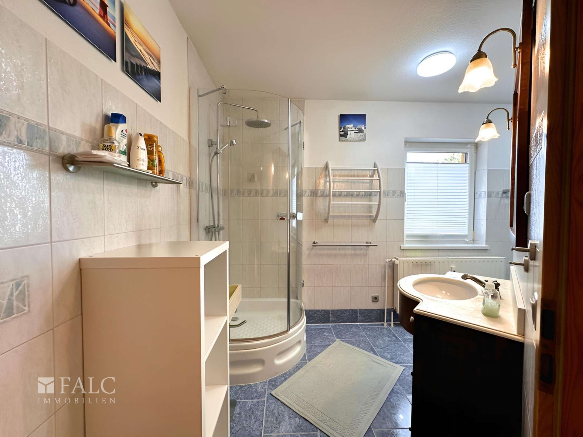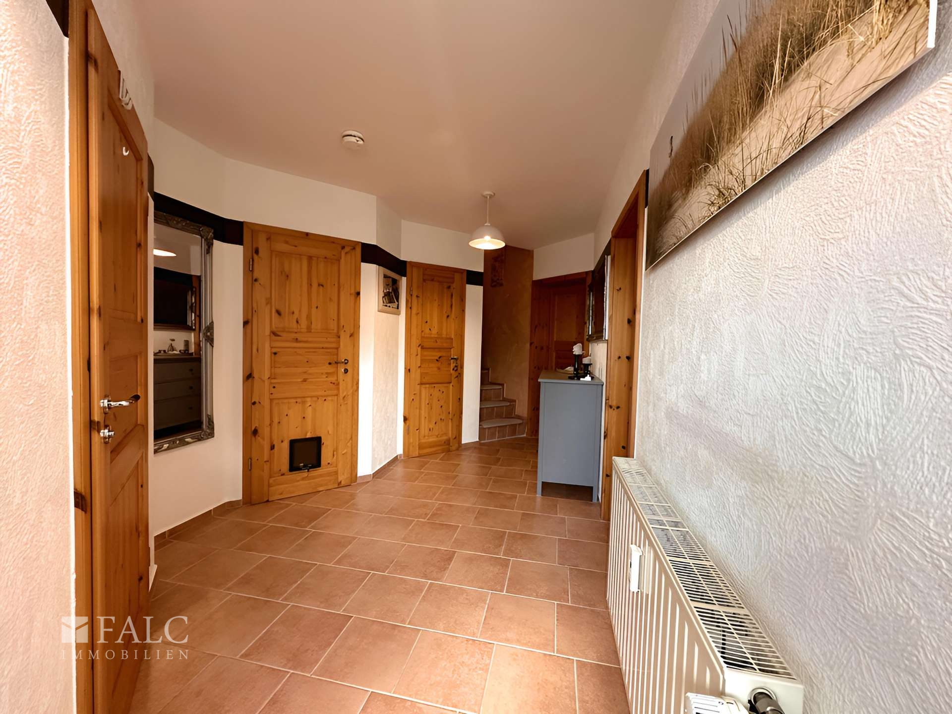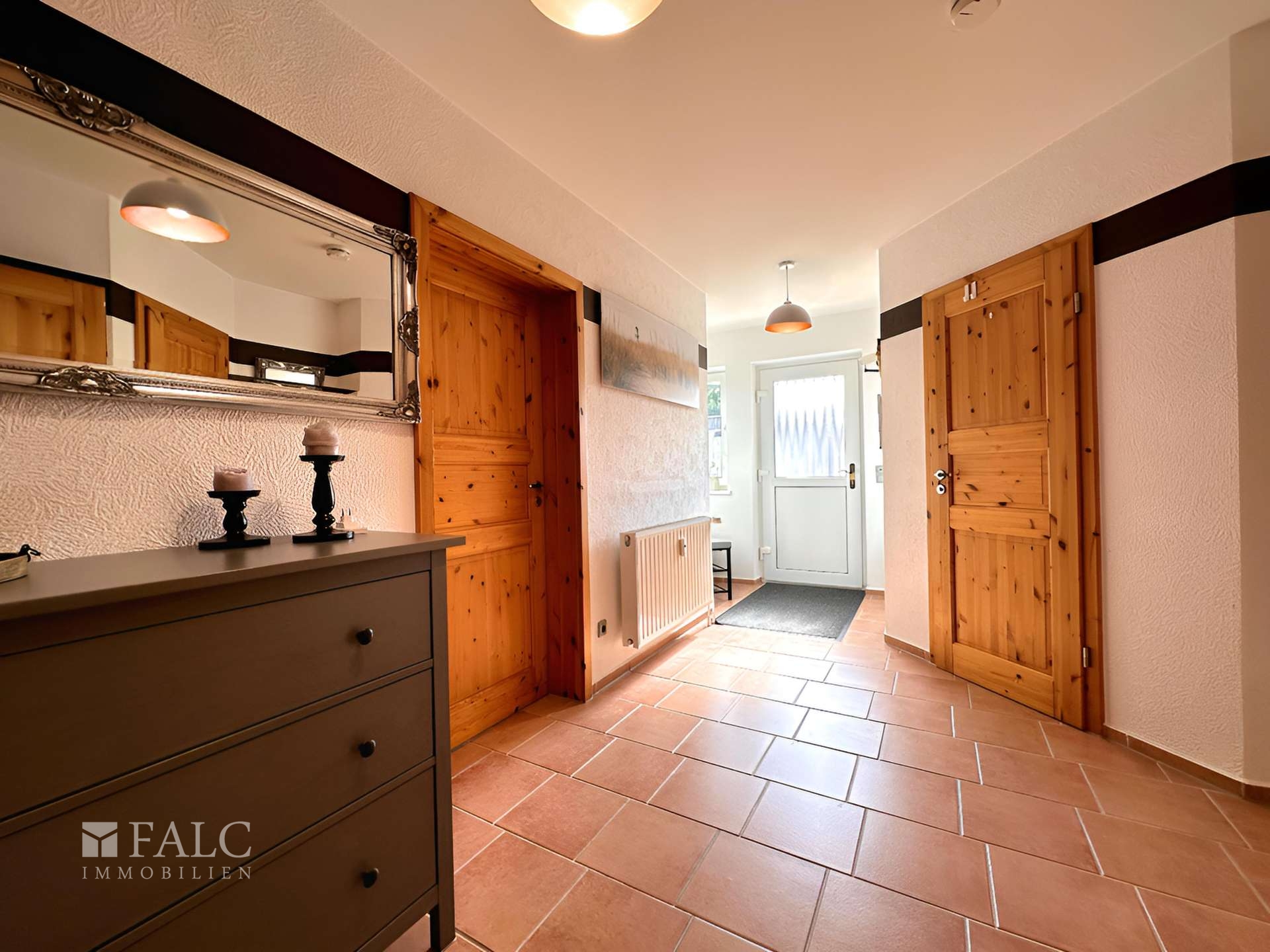 Über die Treppe im Flur erreicht man das Obergeschoss, in dem sich zwei weitere Schlafzimmer sowie ein großzügiges Vollbad befinden. Eine weitere Treppe führt ins Dachgeschoss, das mit einem zusätzlichen Zimmer Raum für ein Schlafzimmer, Büro oder Gästezimmer bietet.