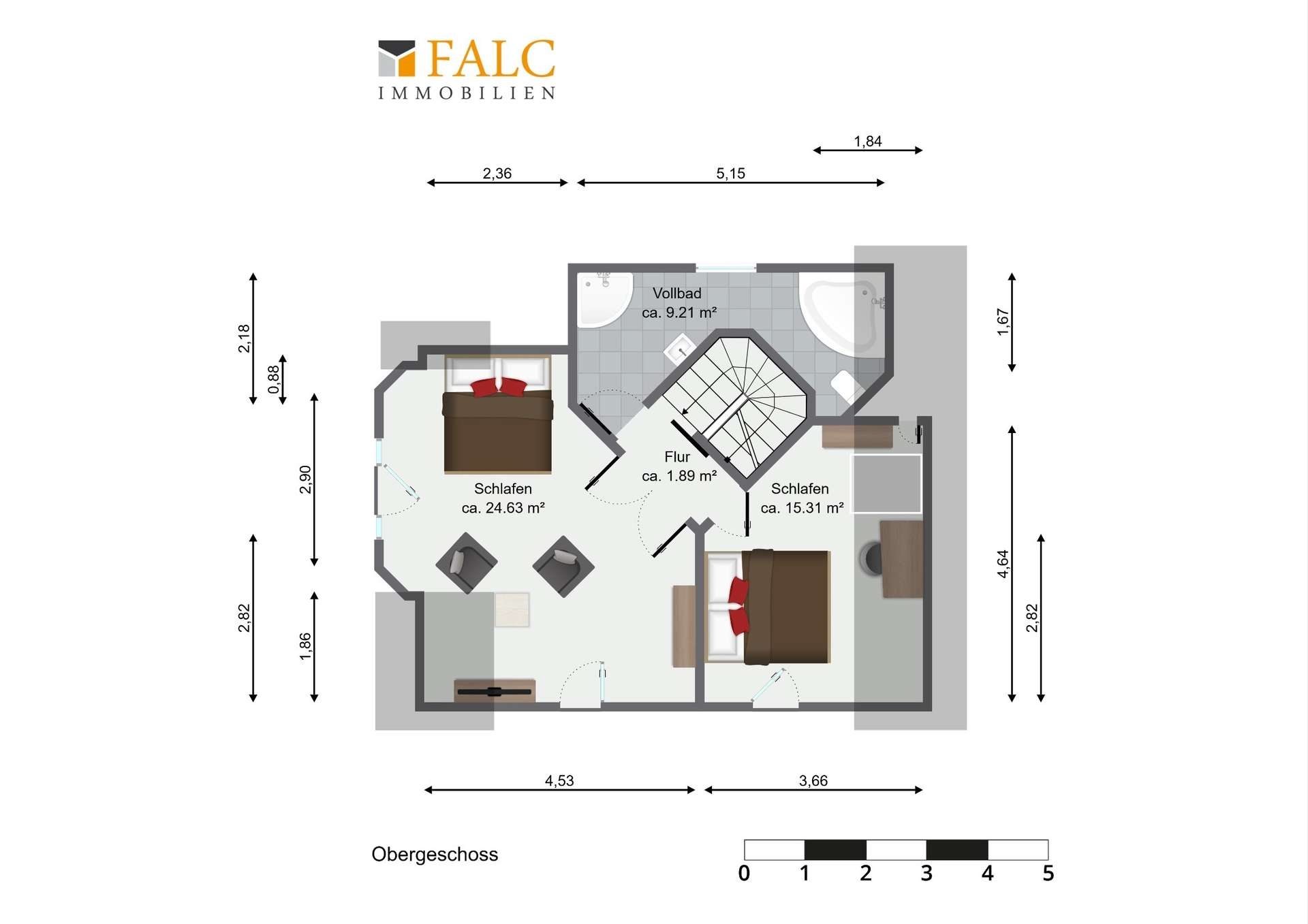 - 1. Obergeschoss mit zwei Schlafzimmern und Vollbad