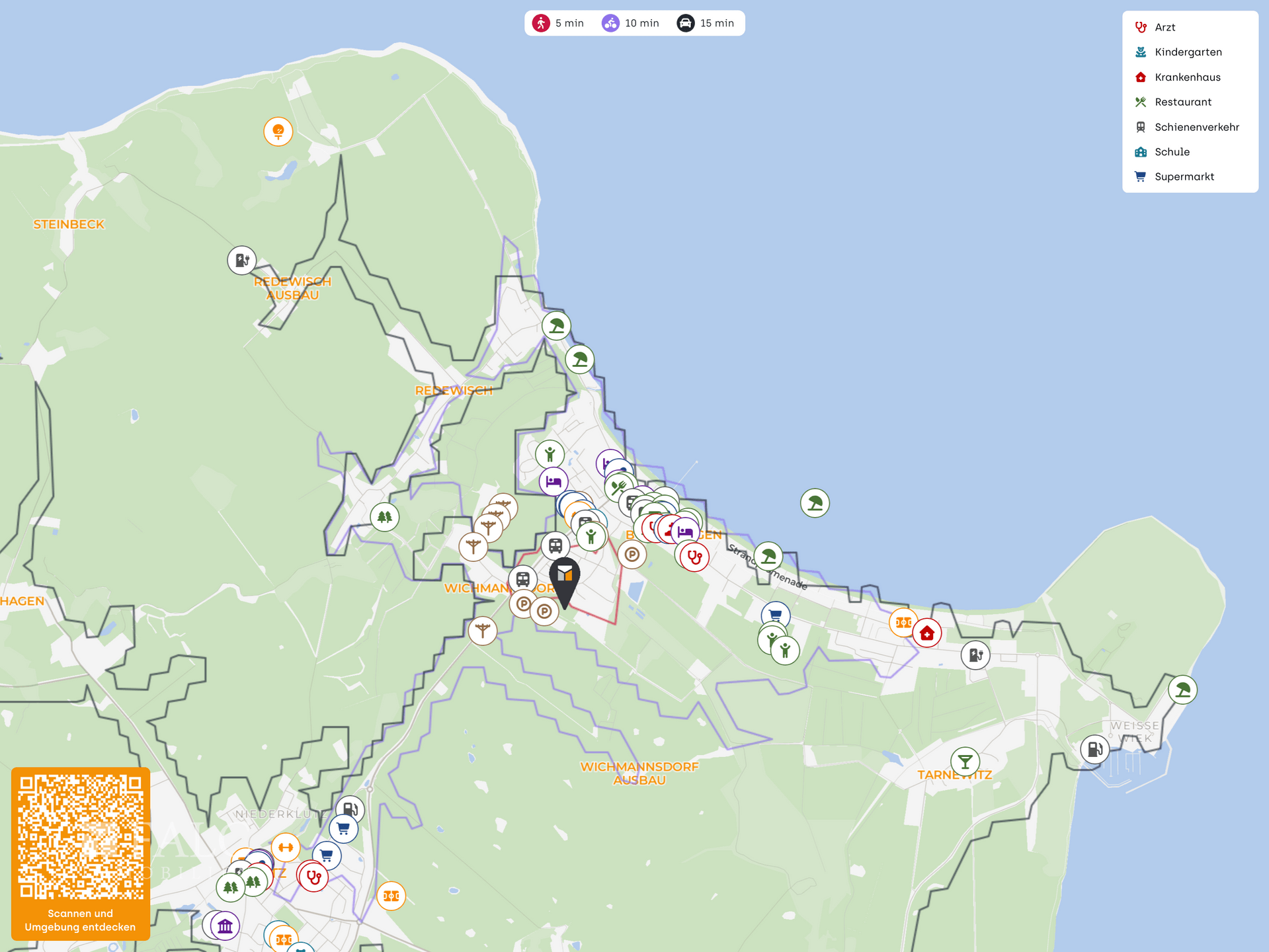 Die Verkehrsanbindung ist ebenfalls überzeugend: Mit dem Auto ist Boltenhagen über die nahegelegene A20 schnell erreichbar und bietet bequeme Verbindungen nach Wismar, Lübeck und Hamburg. Der nächstgelegene Bahnhof in Grevesmühlen ermöglicht regelmäßige Zugverbindungen in die umliegenden Städte, während Regionalbuslinien für eine zuverlässige Anbindung an den öffentlichen Nahverkehr sorgen. Über die Flughäfen Lübeck und Hamburg sind zudem internationale Destinationen unkompliziert zu erreichen. So verbindet die Lage in Boltenhagen die Erholung und Exklusivität eines Ostseebades mit einer hervorragenden Infrastruktur und einer ausgezeichneten Erreichbarkeit.