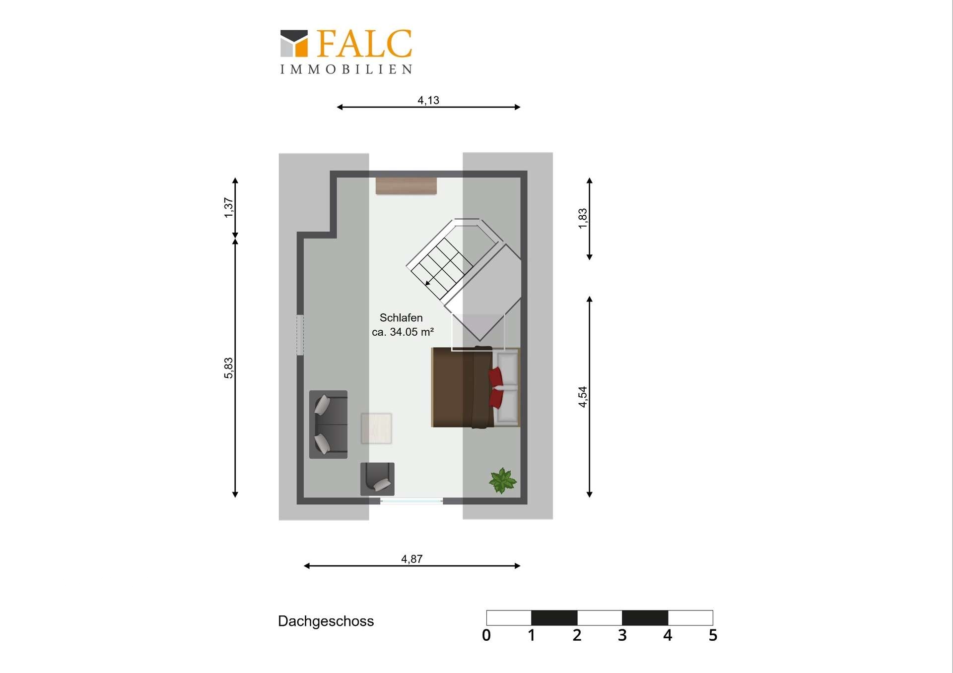- Dachgeschoss mit weiterem Zimmer (z. B. als Schlafzimmer, Büro oder Gästezimmer nutzbar)