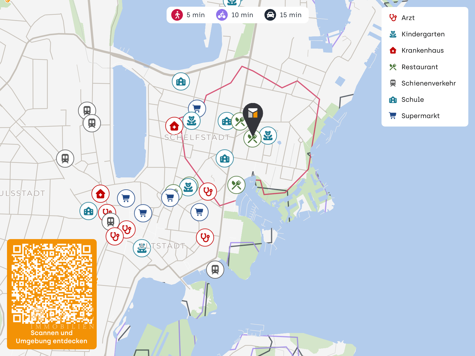 Die Anbindung an den öffentlichen Nahverkehr ist ausgezeichnet. In unmittelbarer Nähe liegen Bushaltestellen, die schnelle Verbindungen in die Innenstadt sowie zu weiteren Stadtteilen bieten. Auch die Straßenbahn ist gut erreichbar und ermöglicht eine komfortable Mobilität innerhalb Schwerins. Der Hauptbahnhof befindet sich ebenfalls nur wenige Minuten entfernt und ist damit ideal für Pendler. Die Lage profitiert zudem von der Nähe zu den Schweriner Seen und mehreren Grünanlagen, die zu Spaziergängen, sportlichen Aktivitäten oder entspannten Stunden im Freien einladen. Diese Kombination aus urbaner Nähe, guter Infrastruktur und hoher Lebensqualität macht die Ferdinand-Schultz-Straße zu einer besonders attraktiven Wohnadresse.