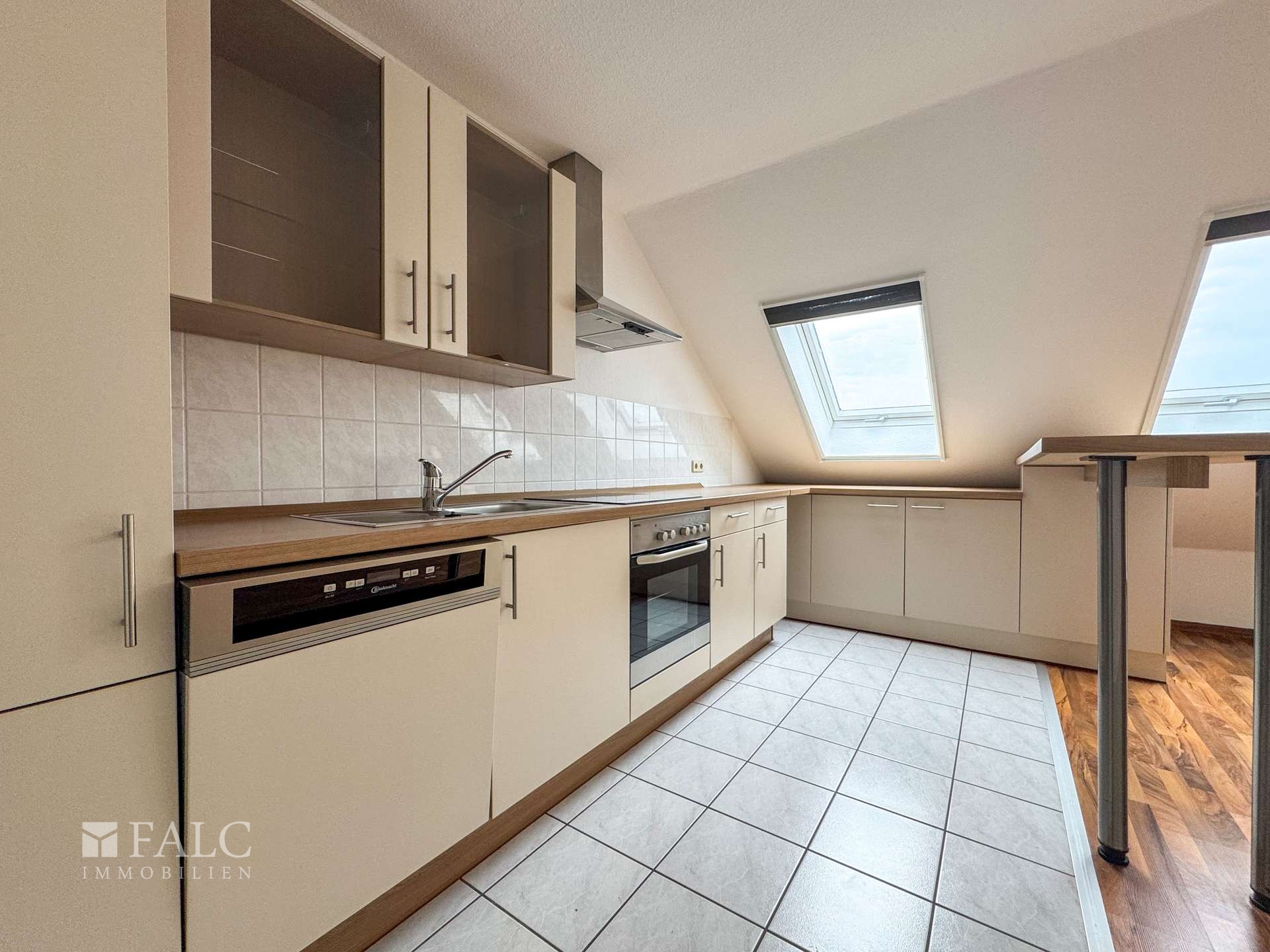 Angrenzend an das Wohnzimmer liegt die offene Küche. Sie ist mit modernen Einbaugeräten ausgestattet und bietet genügend Arbeitsfläche für die Zubereitung kulinarischer Köstlichkeiten. Die praktische Anordnung ermöglicht einen fließenden Übergang zwischen Kochen und Wohnen.