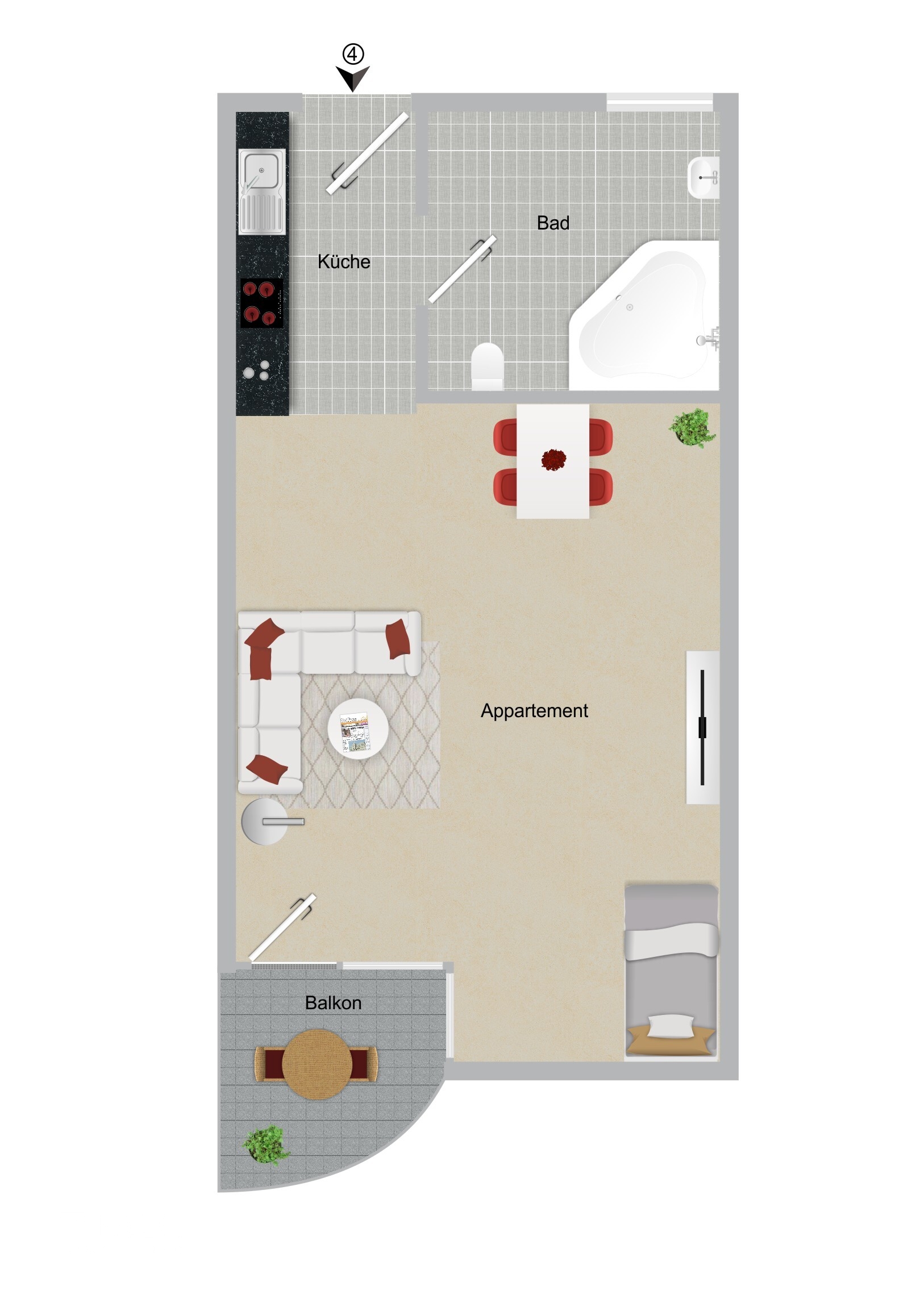 Wohnung 4 – 1. Obergeschoss (Straßenseite): 39,18 m²
