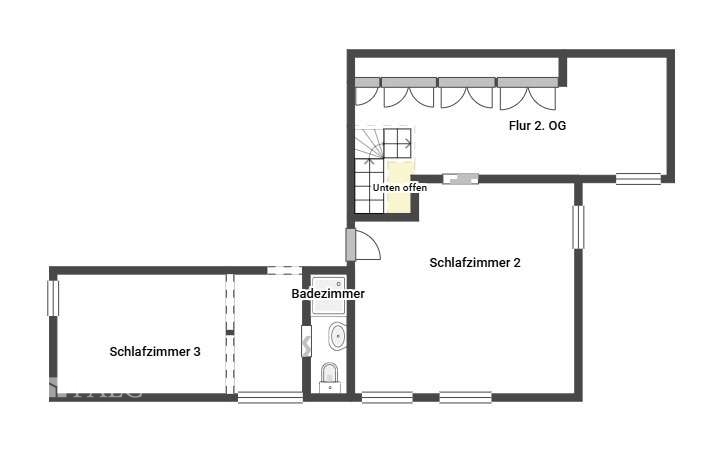 Das 2. Obergeschoss besticht durch eine großzügige Diele mit einem praktischen, großen Einbauschrank, der wertvollen Stauraum bietet. Zwei weitere, lichtdurchflutete Zimmer eröffnen vielfältige Nutzungsmöglichkeiten – ob als Schlafzimmer, Kinderzimmer oder Homeoffice, hier findet jedes Familienmitglied seinen persönlichen Rückzugsort.